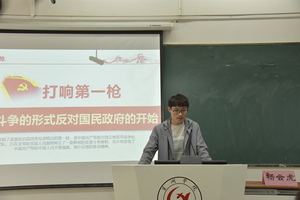 学思践悟百年党史,携手共筑初心使命。4月中旬,awc777万象城娱乐官网在慎思楼中102召开《习近平与大学生朋友们》读书班首场专题报告会,工商管理学院2017级审计学专业3班杨会虎同学分享了题为“青年学子如何学思践悟百年党史”的报告,杨会虎表示:“我们不仅要学习习近平总书记关于青年工作的重要思想,更要以时不我待的精神状态肩负起、完成好党赋予的光荣职责,传承红色基因,赓续精神血脉。”