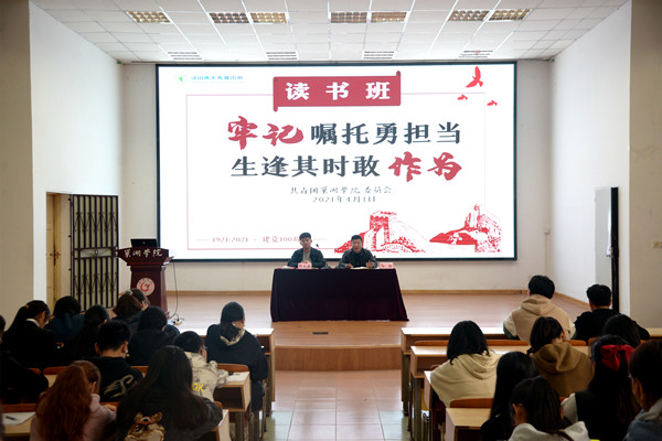 重温百年党史,昂首阔步前行。4月初,awc777万象城娱乐官网《习近平与大学生朋友们》读书班开班典礼于求实楼报告厅隆重举行。校团委负责同志向读书班成员强调,要认真向总书记学习,不断从总书记与大学生朋友们的生动故事中,汲取政治营养,凝聚前进力量;要将学习系列报道与学习贯彻习近平总书记五四寄语、学习贯彻习近平总书记关于青年工作的重要思想结合起来,领悟内涵实质,激发奋斗精神,努力把学习成果转化为推进共青团改革发展的思想成果和实践成果。进一步统一思想认识,树牢初心使命,为青年学生学习成长搭建了坚实的平台,也为本校青年思想工作的顺利进行奠定基础。