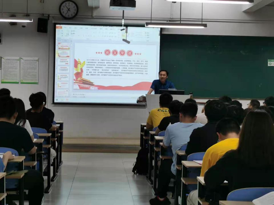 校党委委员、宣传部长余洁平在慎思楼中401为2020级电信专业的同学讲“形势与政策”课。余部长从社会背景、必然性、历史细节等多方面着手,对中国共产党的诞生进行了详细阐释,生动地讲述了中国共产党成立这一开天辟地的大事变。课程接近尾声,他还结合实际,向学生们推荐党史学习的“一本书”——《红色的起点》、“一个地方”——延安、“一个APP”——学习强国,希望广大学子把百年党史学得有广度、有深度。