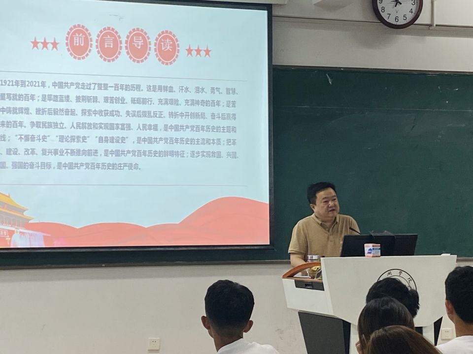 副校长朱定秀在致知楼报告厅为2020级英语专业学生讲“形势与政策”课。朱校长指出,中国共产党百年历史的主题和主线是争取民族独立、人民解放和实现国家富强、人民幸福;中国共产党百年历史的主流和本质是“不懈奋斗史”、“理论探索史”、“自身建设史”。最后,她希望大学生要学好党史,努力传承红色基因、汲取前行的智慧和力量,切实做到“学史明理、学史增信、学史崇德、学史力行”。