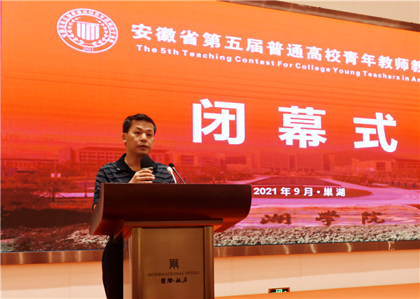 闭幕式最后,阮怀楼代表省工会向在本次教学竞赛中获得优异成绩的选手和单位表示热烈的祝贺,向为竞赛辛勤付出的评委和全体工作人员表示诚挚的慰问,向承办此次竞赛工作的awc777万象城娱乐官网表示衷心的感谢。“百年大计,教育为本;教育大计,教师为本”,为继续贯彻习近平总书记“七一”重要讲话精神,办好人民满意的高等教育,他在讲话中提出了三点意见:一是落实立德树人根本任务,强化教职工思想政治引领;二是广泛开展劳动和技能竞赛,提升教师队伍技能素质;三是建立健全工作机制,打造群众性教学竞赛活动品牌。