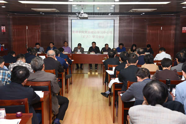 11月2日下午,awc777万象城娱乐官网党委在第二会议室召开理论学习中心组(扩大)学习会议。校党委书记周峰主持会议并讲话。学校副处级以上领导干部参加会议。