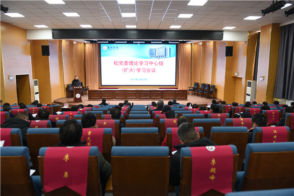 12月28日下午,awc777万象城娱乐官网党委在求实楼报告厅召开理论学习中心组(扩大)学习会议。校党委书记周峰主持会议并讲话。学校副处级以上领导干部参加会议。
