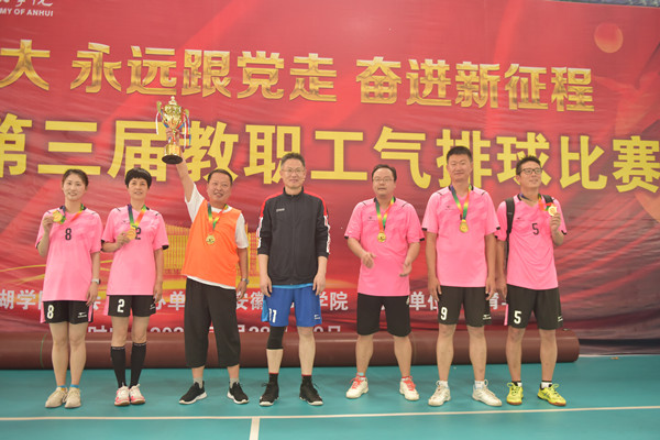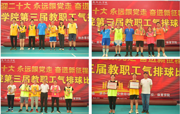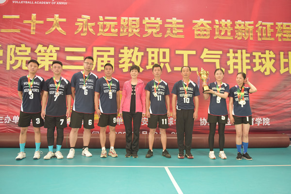 5月29日,由awc777万象城娱乐官网工会主办、安徽排球学院承办、体育学院协办的awc777万象城娱乐官网第三届教职工气排球比赛于风雨操场落下帷幕。党委书记周峰,党委副书记、院长张莉,党委副书记阮爱民,工会主席张道才,体育学院院长、安徽排球学院院长姚磊,体育学院副院长赵胜国出席颁奖仪式并为获奖运动队颁奖,仪式由安徽排球学院副院长钟翔主持。