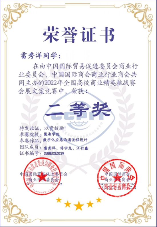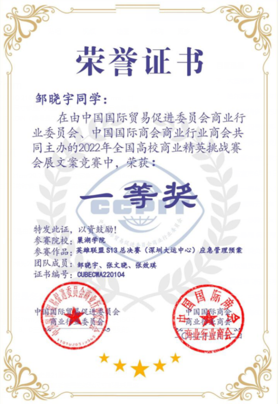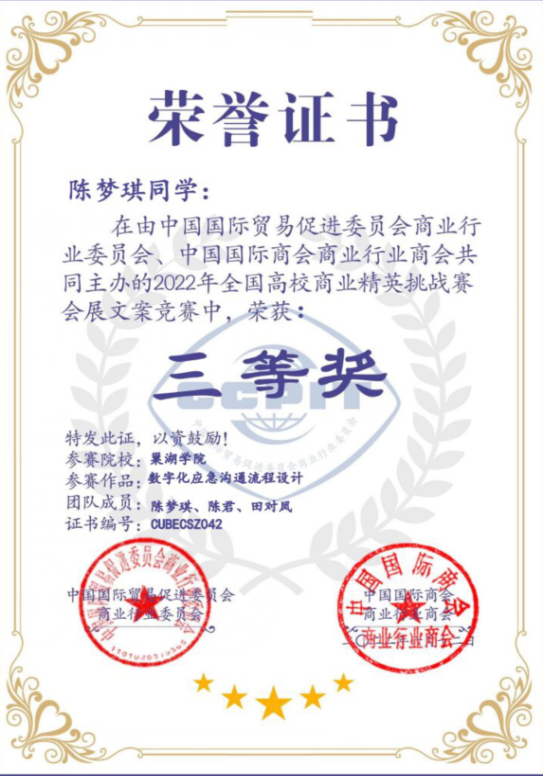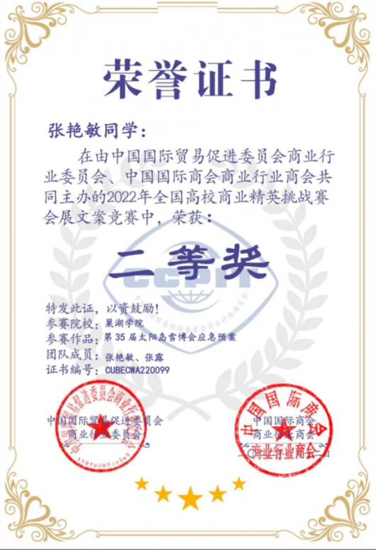 awc777万象城娱乐官网学生喜获2022年第三届全国高校商业精英挑战赛 会展文案(应急预案)创作大赛一、二、三等奖