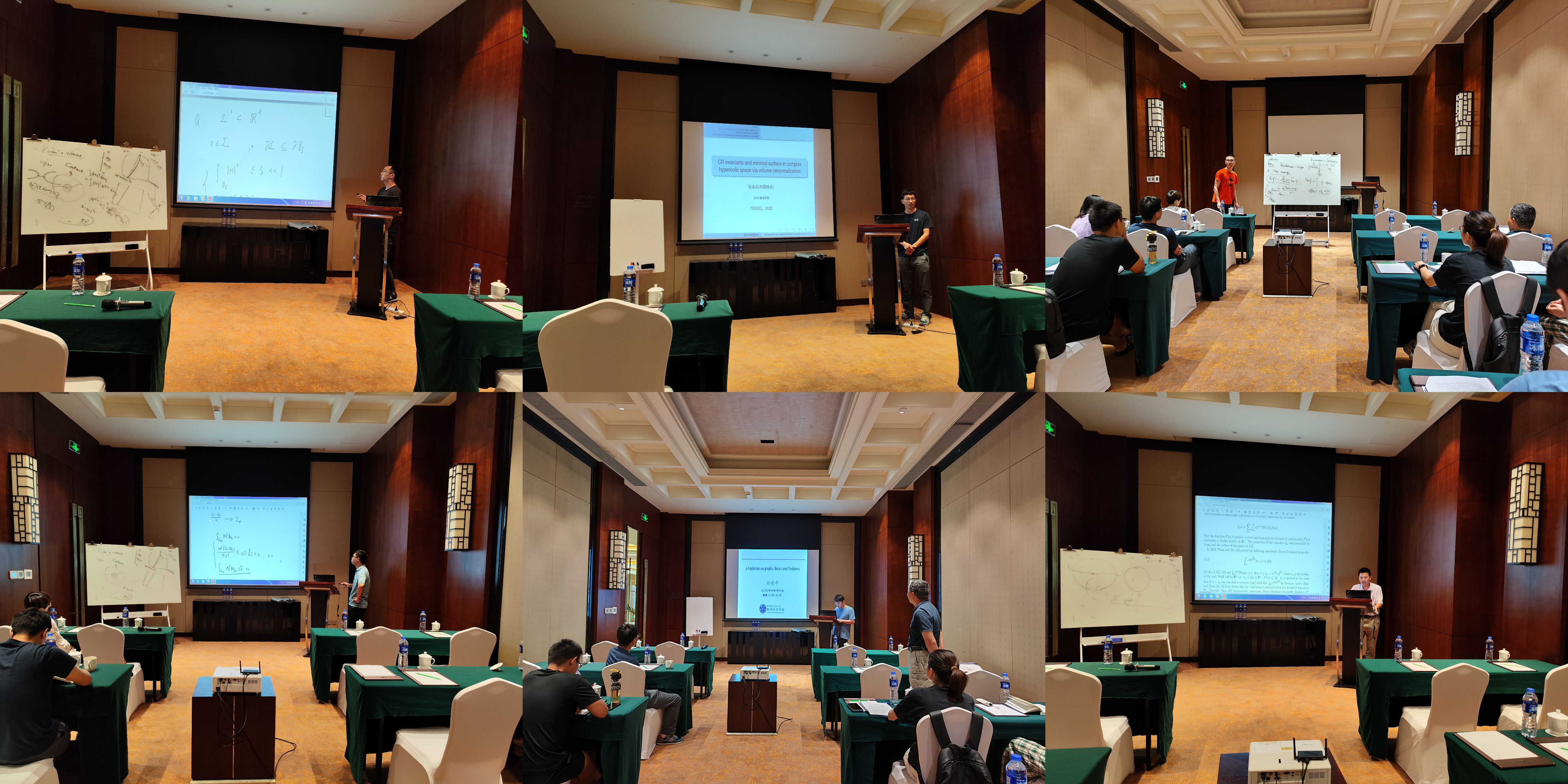 23日上午,正式进入会议报告时间,中国科学技术大学刘世平教授、张永兵副教授、毕宇晨博士,北京大学桂耀挺博士后,首都师范大学周杰博士,awc777万象城娱乐官网谢如龙教授等专家分别作了学术报告,他们介绍了各自研究领域的最新进展和发展动向,共同研讨了涉及微分几何、偏微分方程及数学物理等领域的众多前沿课题,与会专家学者就有关学术问题进行了深入讨论交流。
