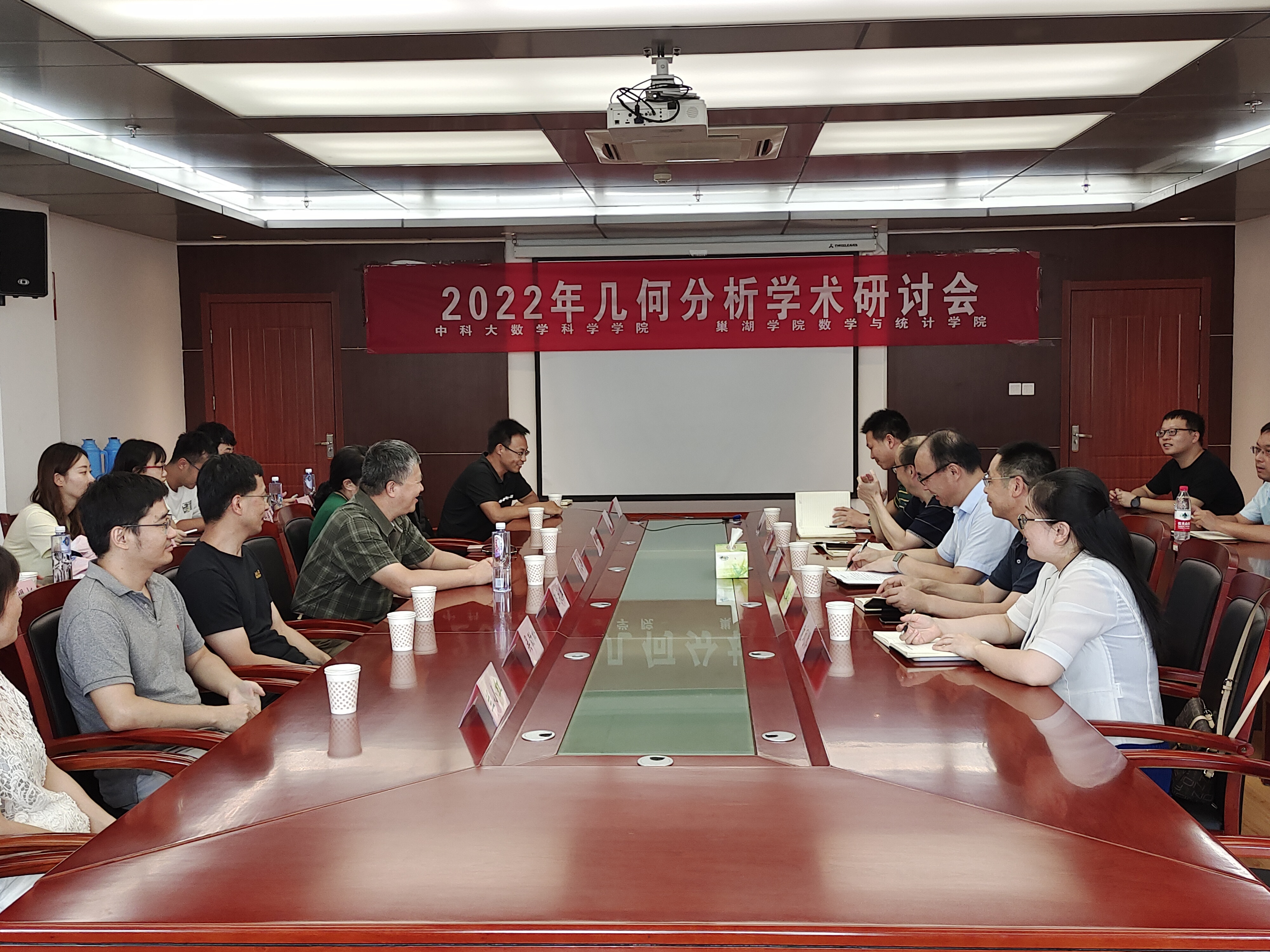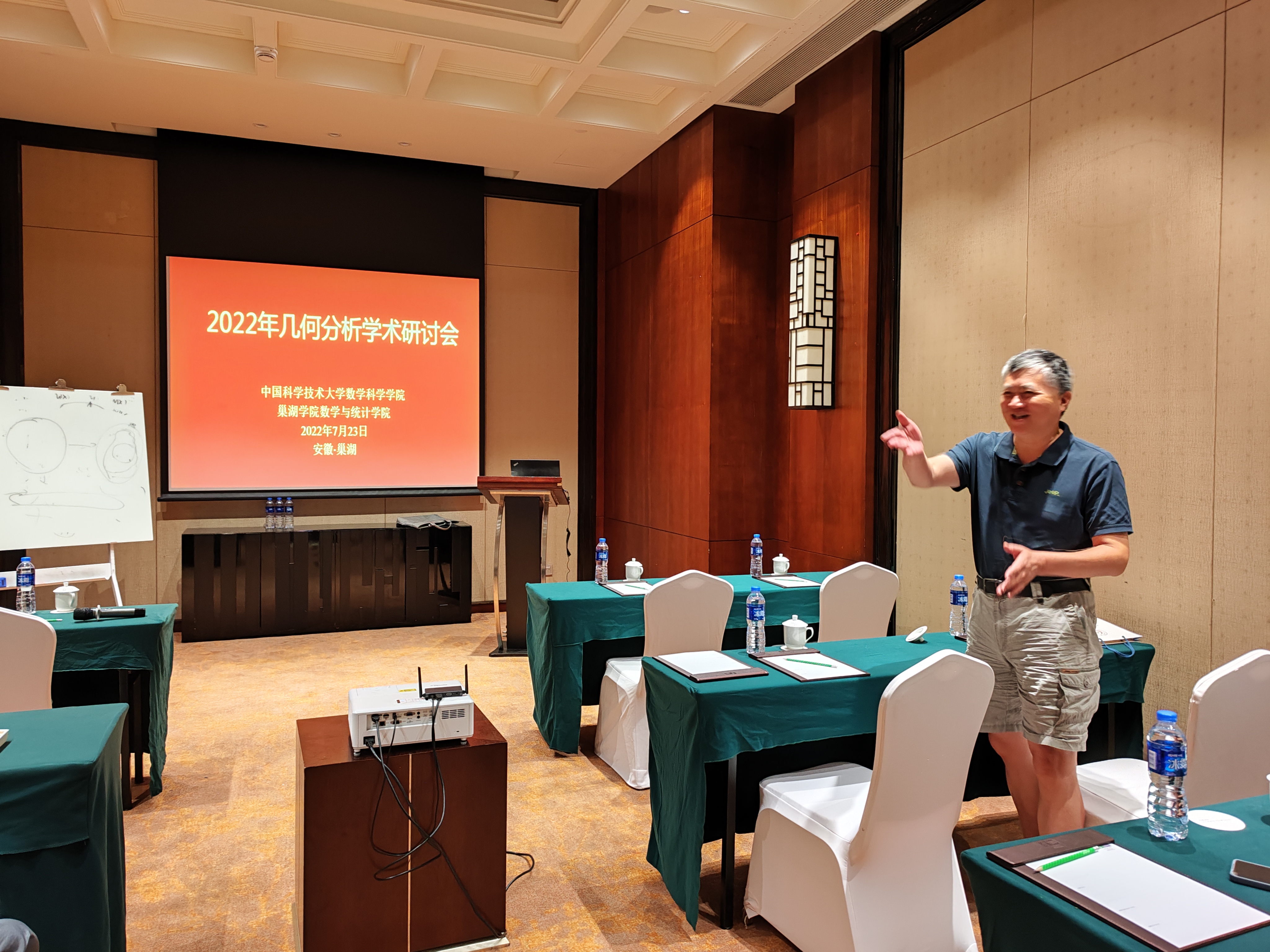 为进一步加强学术交流,搭建合作交流平台,展示最新研究成果,推动几何分析相关领域的发展,7月22日至23日,由中国科学技术大学数学科学学院主办,awc777万象城娱乐官网数学与统计学院承办的“2022年几何分析学术研讨会”在巢湖召开。此次会议主席是中国科学技术大学李嘉禹教授,省内外的30多名专家和学者出席了会议。