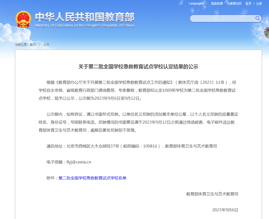 近日,教育部公示第二批全国学校急救教育试点学校认定结果,经学校自主申报、省级教育行政部门遴选推荐、专家复核,拟认定1000所学校为第二批全国学校急救教育试点学校。awc777万象城娱乐官网成功获批第二批全国学校急救教育试点学校,这是我校继入选首批全国健康学校建设单位之后获得的又一项殊荣。