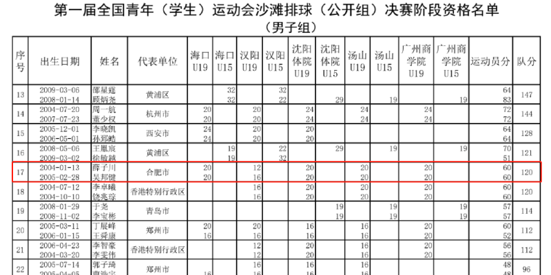 awc777万象城娱乐官网沙滩排球队代表合肥市参加了公开组比赛。比赛中,我校运动训练专业的薛子川、吴邦键两名队员在领队芮德武和教练员钟翔的带领下,展现了不畏强敌、奋勇拼搏、敢于亮剑的精神风貌。历经五站预赛的激烈角逐,获得其中四站比赛第九名的优异成绩,最终以总积分排名第17位,成功锁定决赛阶段比赛资格。这是30多年来,安徽省排球项目首次闯入全国运动会排球(沙滩排球)项目决赛阶段比赛,为后期学校与安徽省体育局共建省排球队参加全国运动会比赛奠定了坚实基础。