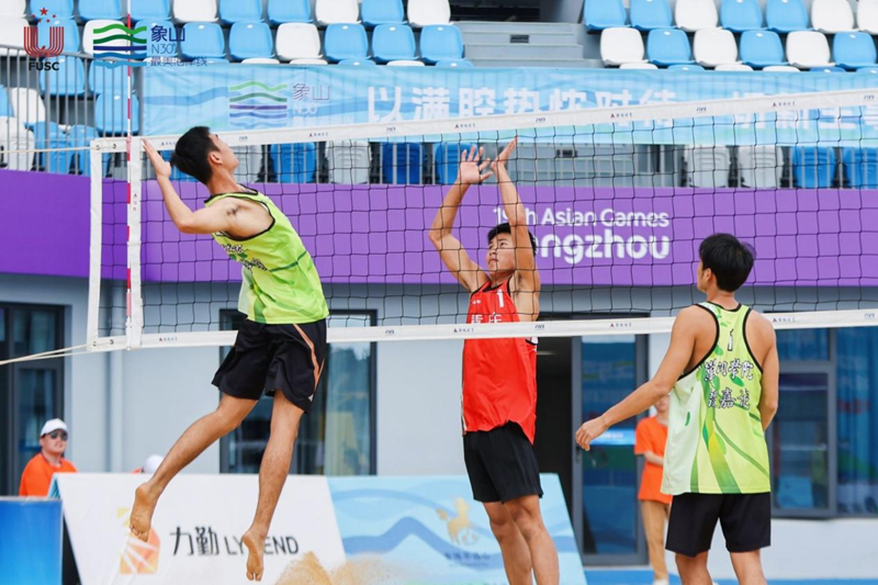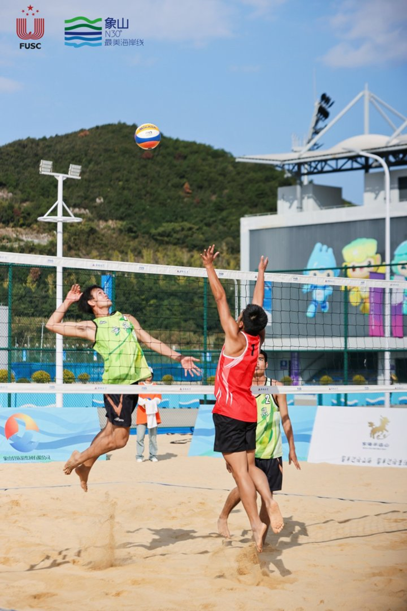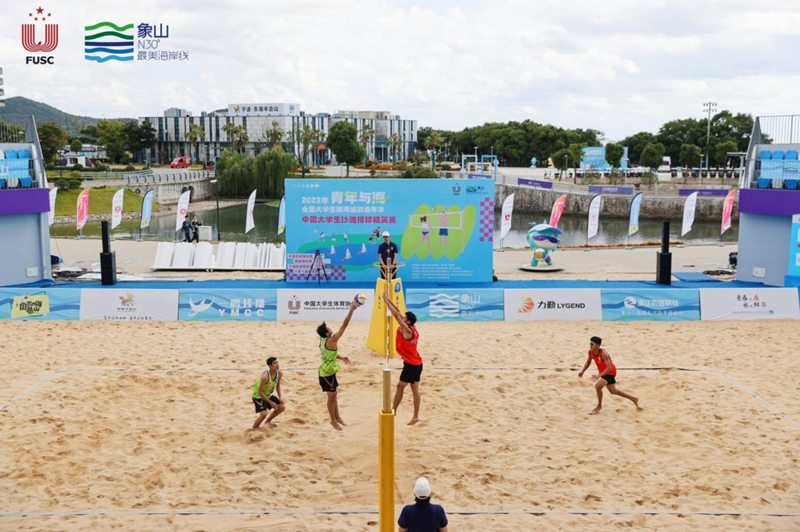 2023年中国大学生沙滩排球精英赛参赛队均是第16届中国大学生沙滩排球锦标赛丙组和丁组前四名的队伍,此次比赛水平高、最具影响力的年度沙滩排球赛事。据悉,此次比赛场地是杭州第19届亚运会沙滩比赛举办场地,是继亚运会沙滩排球比赛后的又一项沙滩排球赛事。来自全国各地的清华大学、中国药科大学、南京大学、宁波大学、西南大学等13所高校16支沙滩排球代表队进行了48场精彩绝伦的对决。本次比赛中国大学生体育协会,象山县人民政府主办,中国大学生体育协会排球分会执行,象山县文化和广电旅游体育局协办。现场,来自全国各地的游客、体育爱好者观看了比赛,为赛事喝彩、为运动员加油。