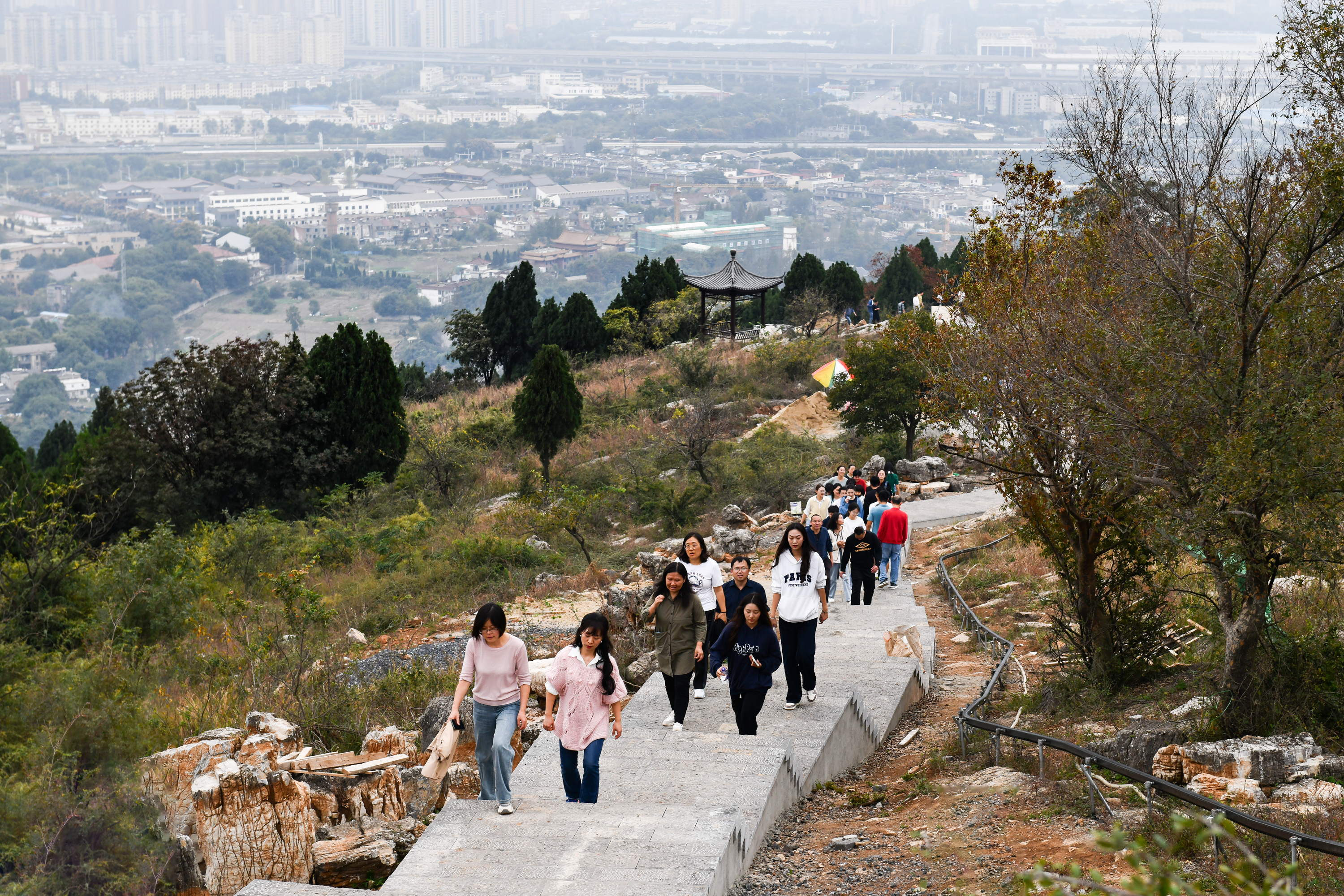 25日下午,薄云遮日,气温适宜,正是登山的好天气。活动时间还未到,上山的小道上就已出现登山者的身影,等活动正式开始时,登山的教职工逐渐增多,有的是健步如飞如履平地,厉害;有的是走三步歇两步,加油。到达山顶,甩几把热汗,痛快;放眼远眺,如画美景尽收眼底,享受。27日下午,随着天色变暗,本次登山活动圆满结束。