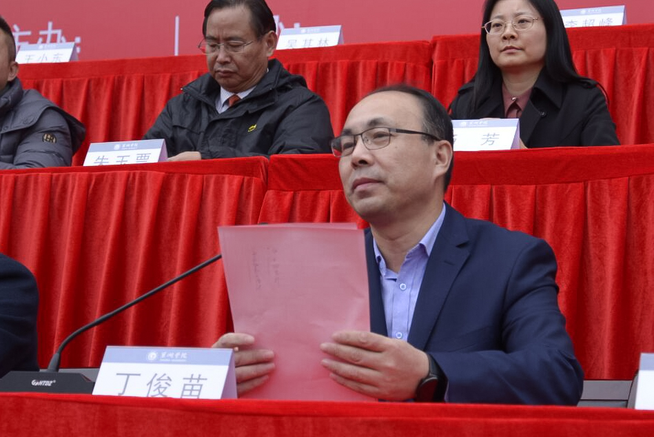 丁俊苗致闭幕词,他首先向本届运动会取得优异成绩的集体和运动员表示热烈的祝贺,并向所有辛勤工作的教练员、裁判员以及工作人员表示衷心的感谢。他指出,生命在于运动,全校师生应以本届运动会为新的起点,培养终身体育意识,加强户外体育锻炼,养成健康生活方式,在全校掀起人人参与、天天运动的热潮,使热爱体育、崇尚运动成为校园的一道亮丽风景,共同为建设特色鲜明的地方应用型高水平大学作出新的更大的贡献。