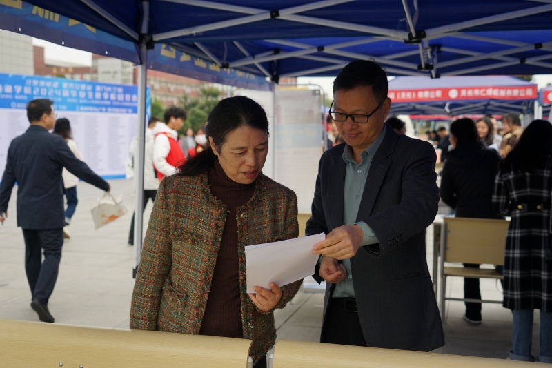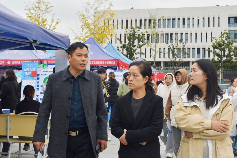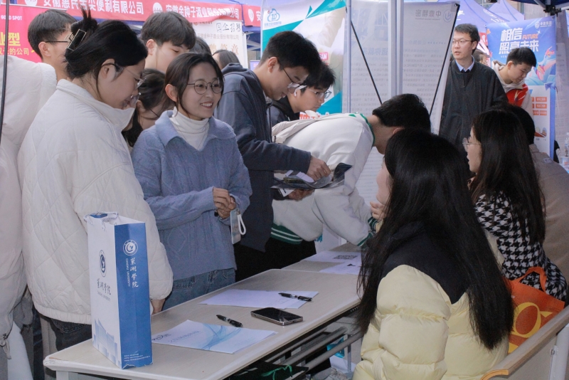 双选会现场攘来熙往,氛围热烈。企业招聘人员向参会学生积极介绍企业文化、优势特色、行业前景、岗位职责等情况,毕业生仔细询问用人单位工作环境、福利待遇、晋升发展等问题,积极物色意向单位、确定求职意愿,主动投递简历。据统计,本次活动参会企业共收到学生简历超过4000份,双方达成初步就业意向近500余人。期间,部分学院分别与天长市人社局、校友企业负责人举行了校地、校企合作洽谈,就进一步强化校企合作、访企拓岗、实习就业基地建设和产学研合作等达成共识。