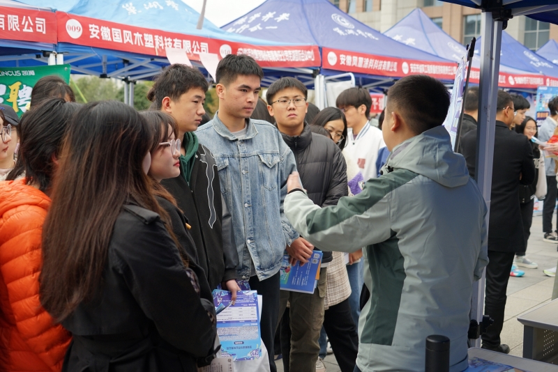 本次双选会以“才聚环巢湖、服务安徽省、融入长三角”为主题,得到省大中专毕业生就业指导中心、巢湖市人社局、天长市人社局、新安人才网大力支持,党委委员、副校长朱定秀到现场指导活动。活动突出服务地方经济社会发展、聚焦毕业生多元化就业需求,共邀请皖北煤电、中鼎橡塑、万达商业、晶澳太阳能、中国人保等182家企业来校招贤纳才,岗位涉及智能制造、信息服务、材料科学、管理运营、文化旅游、教育培训等产业行业,提供职位数近1万个,吸引了超过2000名毕业生参加。