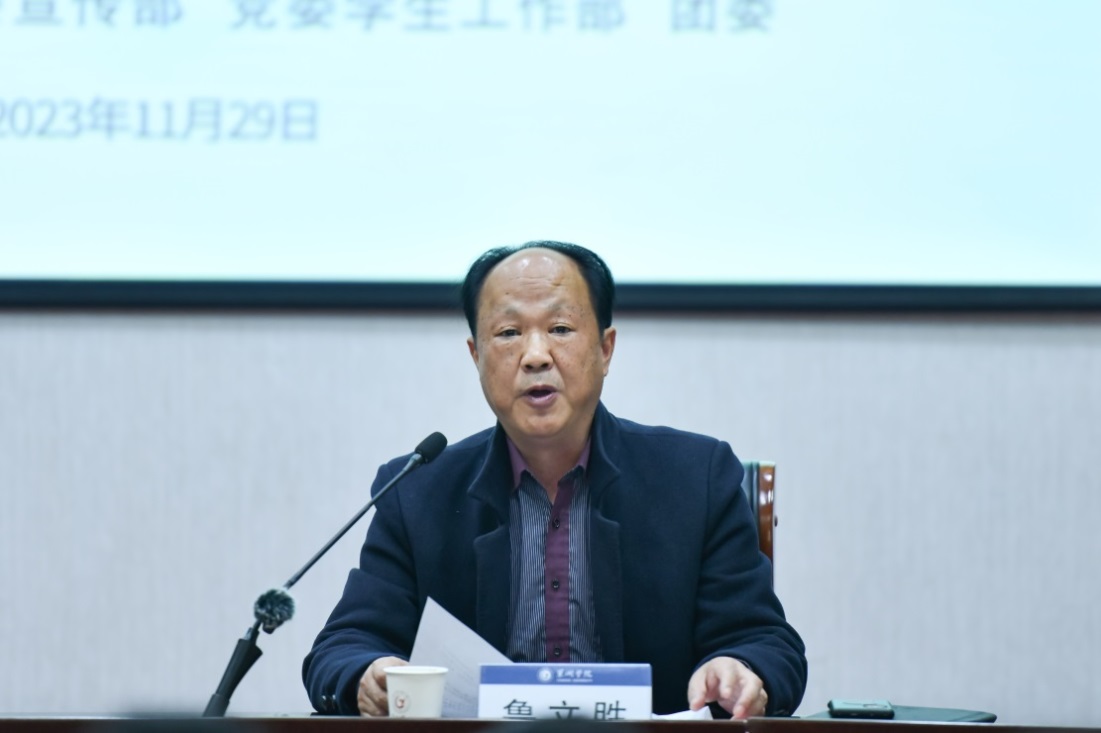 鲁文胜介绍本届读书月的筹备情况和活动方案。本届读书月以“赓续历史文脉 品读红色经典”为主题,将举办“品红色书香 颂中华文化”经典评读比赛、“青春心向党奋进新征程”汤山青年“读享会”、第五届“朗读者”红色经典诵读比赛等一系列丰富多彩的阅读活动,让广大师生在丰富多彩的活动中充分感受到书籍的魅力和阅读的快乐。