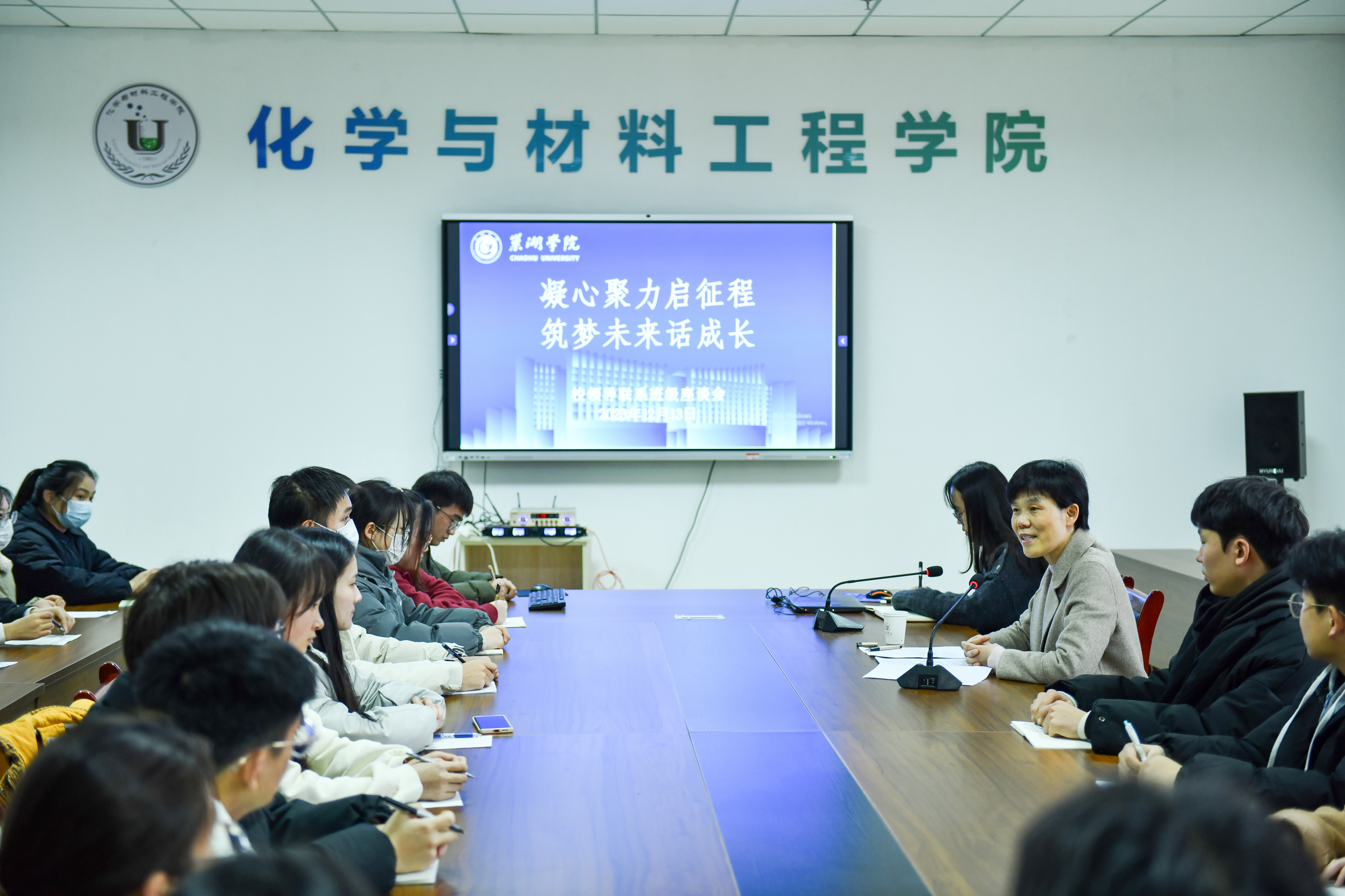 为更好地关心关爱学生,指导班级建设,促进学生成长成才,切实提高大学生思想政治工作的针对性和实效性,12月13日下午,在润德楼北303会议室,校党委副书记、校长张莉深入联系班级讲授思政课,并参加化学与材料工程学院22级应用化学1班“凝心聚力启征程,筑梦未来话成长”主题班会。