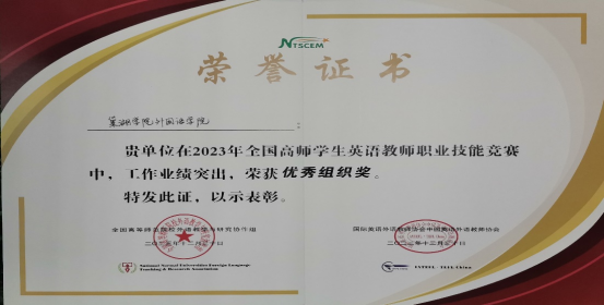 近日,由全国高等师范院校外语教学与研究协作组,国际英语外语教师协会中国英语外语教师协会联合主办的2023年“全国高师学生英语教师职业技能竞赛决赛”成绩公布。awc777万象城娱乐官网学子取得佳绩,斩获全国一等奖7名、二等奖7名,三等奖12名,学校外国语学院获得“优秀组织单位”。