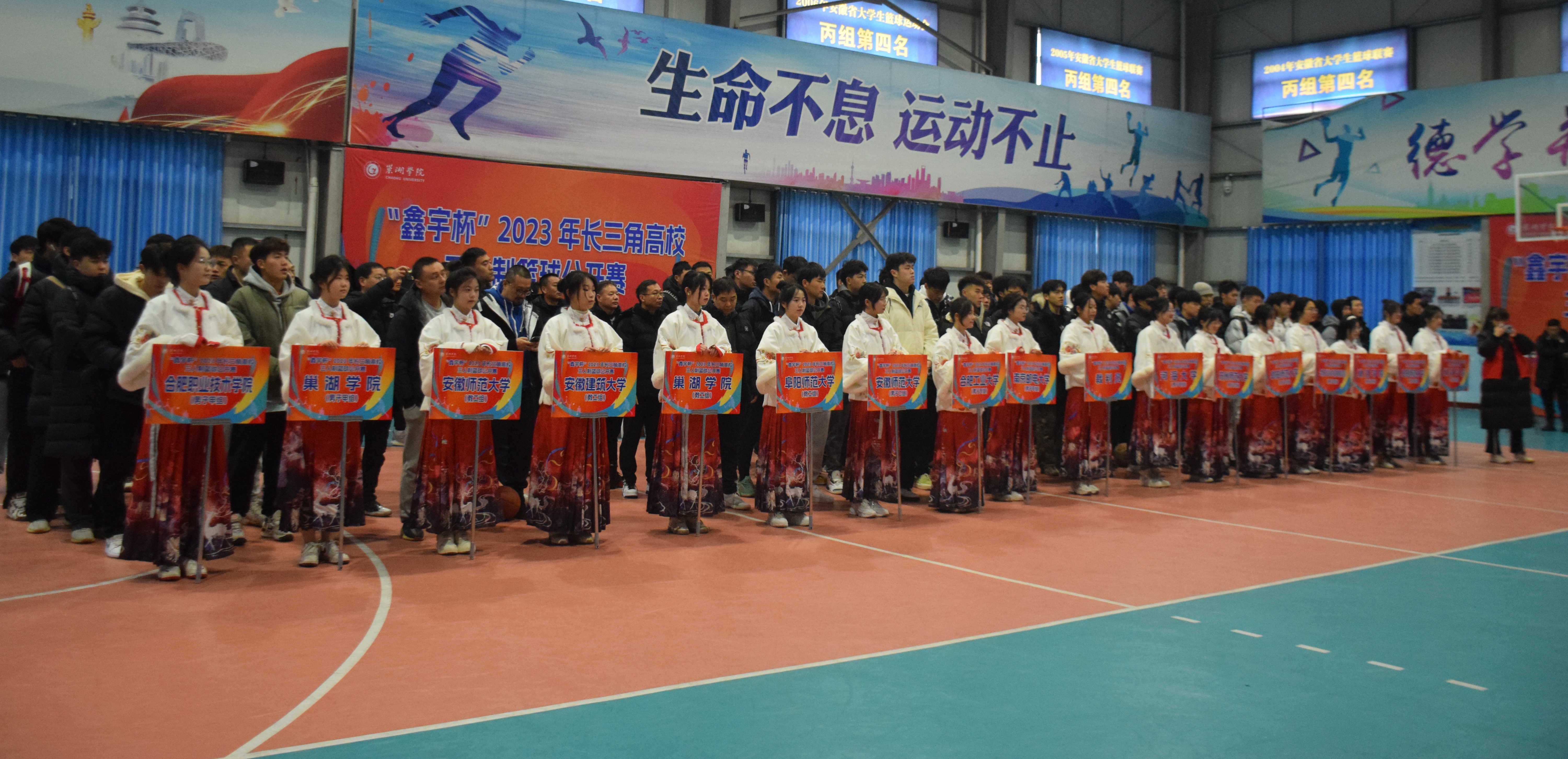 12月22日至24日,长三角高校三人制篮球公开赛在awc777万象城娱乐官网顺利举办并圆满落幕,本次比赛共有河海大学、南京邮电大学、杭州师范大学、合肥工业大学、安徽师范大学、安徽建筑大学、阜阳师范大学等18支代表队参加比赛。awc777万象城娱乐官网副校长丁俊苗、安徽师范大学二级教授方青、阜阳师范大学工会主席魏文霞、awc777万象城娱乐官网工会主席何照泽、阜阳师范大学体育学院党委书记于少华、定远县鑫宇体育股份有限公司副总经理李明耀、巢湖市篮球协会副主席胡跃兵、本次赛事裁判长宫喜出席开幕式,开幕式由awc777万象城娱乐官网体育学院副院长钟翔主持。