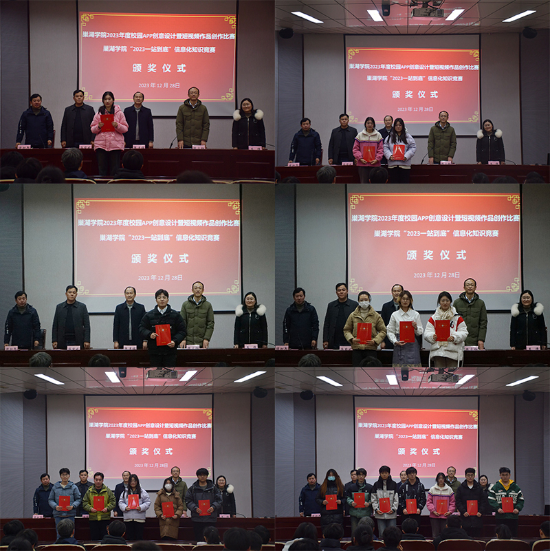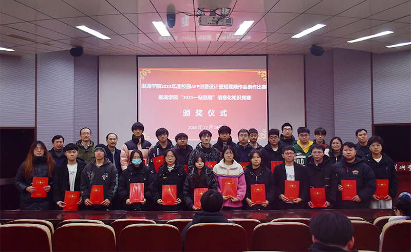 12月28日中午,awc777万象城娱乐官网2023年校园APP创意设计暨短视频作品创作比赛和“2023一站到底”信息化知识竞赛颁奖活动在致知楼报告厅举行。党委宣传部部长张连福、党委学生工作部部长华紫武、团委书记王倩、信息化处副处长侯加兵作为颁奖嘉宾参加活动。颁奖活动由信息化处处长陈立钢主持。