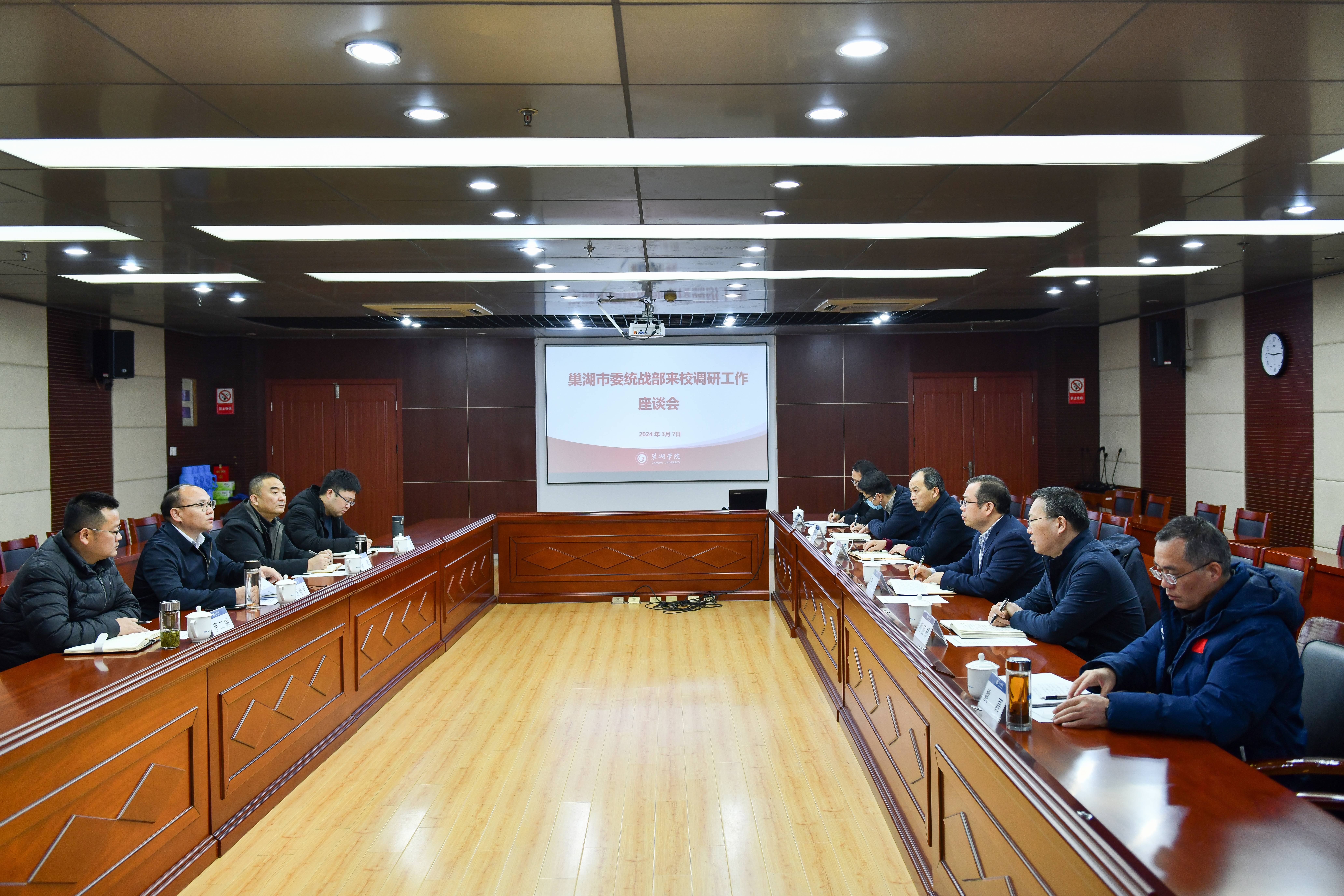 3月7日上午,巢湖市委常委、组织部部长、统战部部长张金平,常务副部长曹勇,副部长、市民宗局局长罗二保等一行来我校开展工作调研。