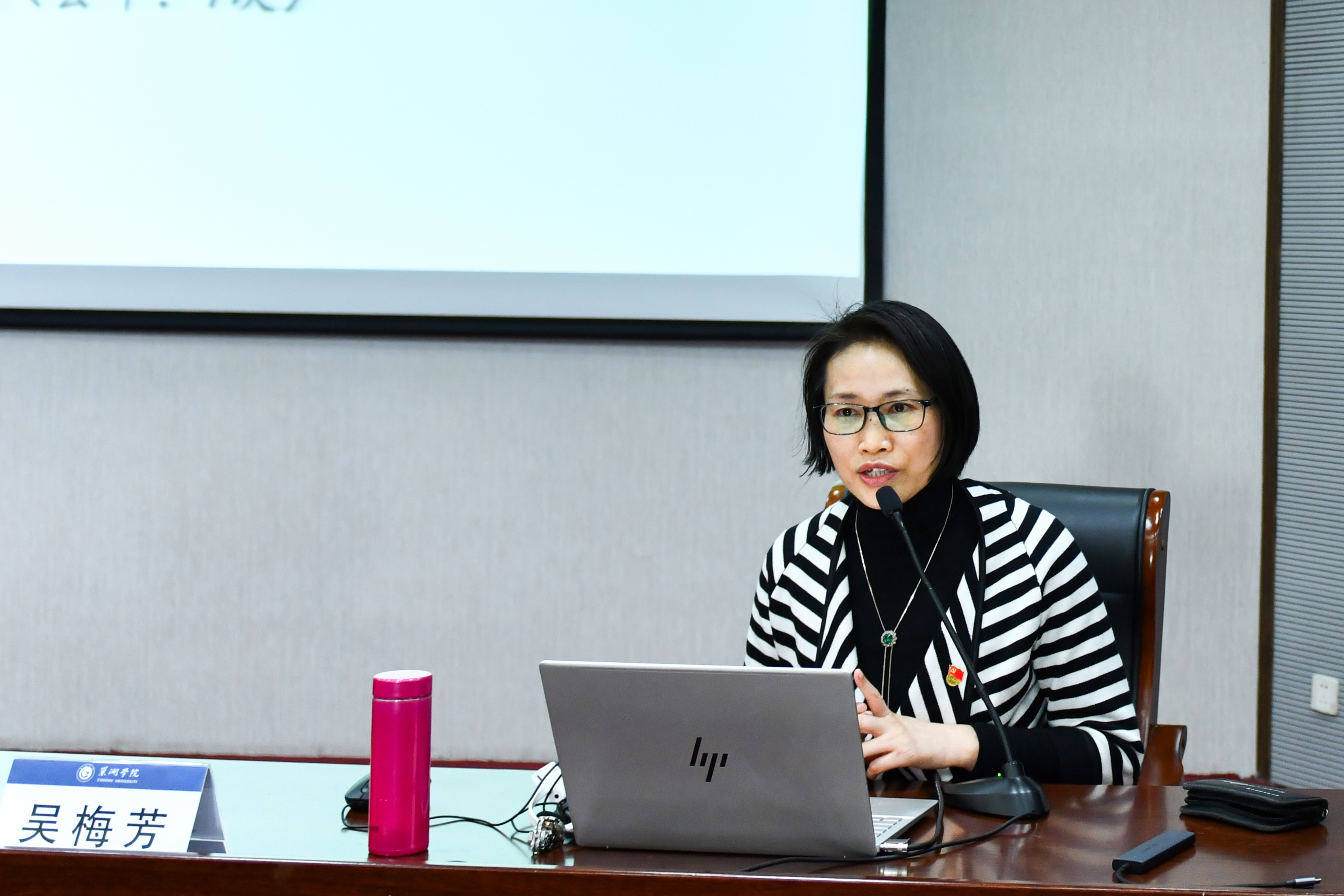 吴梅芳在报告中从大会基本情况、大会的主要精神、安徽代表团参会情况等方面,生动介绍了全国两会盛况,详细解读了习近平总书记在全国两会期间的重要讲话精神和全国两会精神。报告主题鲜明、脉络清晰、干货满满,对推进学校工作具有重要的指导意义。