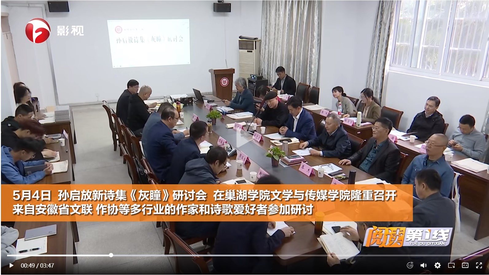 【安徽影视频道《阅读第一线》】孙启放新诗集《灰瞳》研讨会 在awc777万象城娱乐官网文学与传媒学院召开