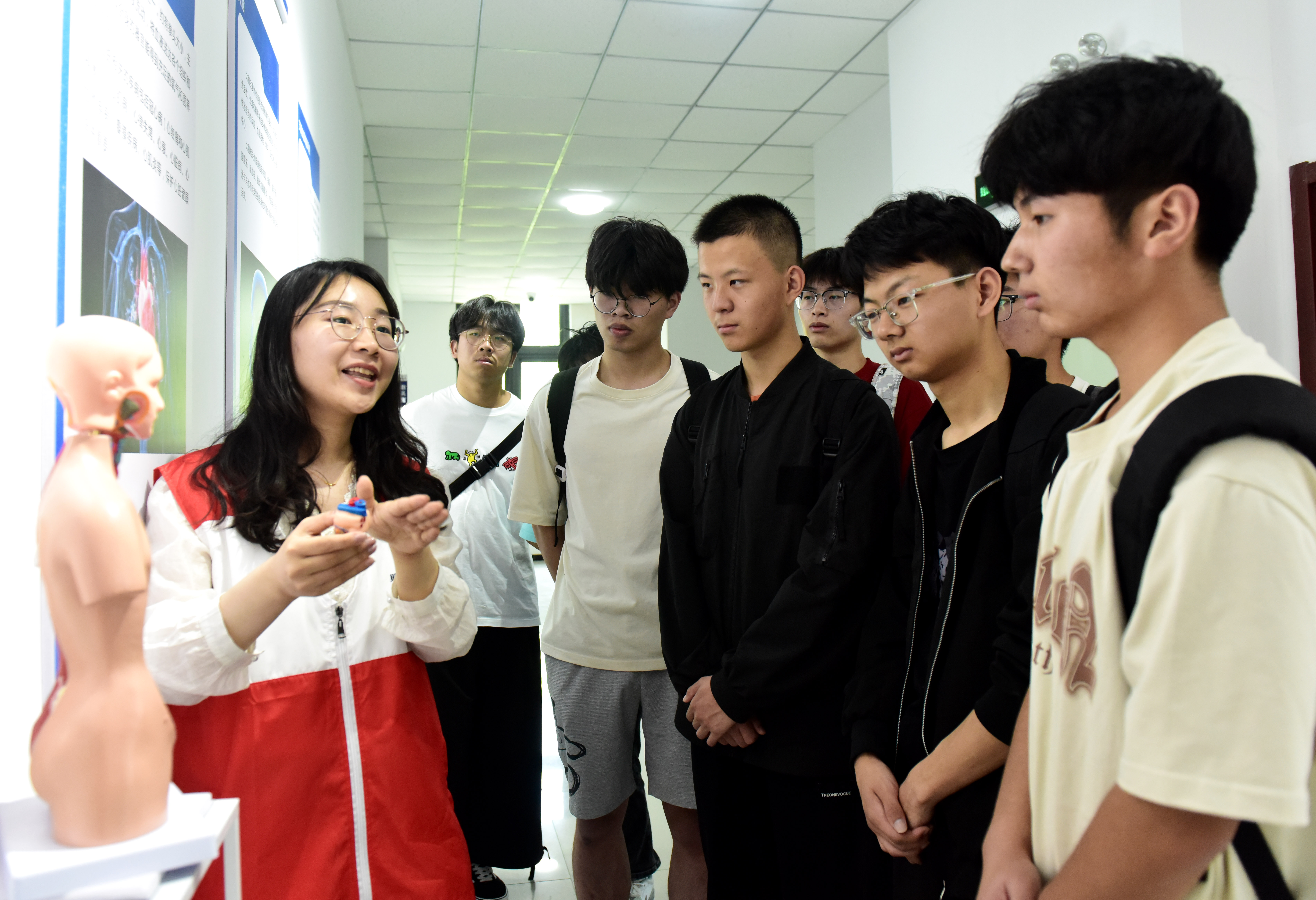 揭牌仪式后,与会领导一行参观了我校应急救护培训工作站。