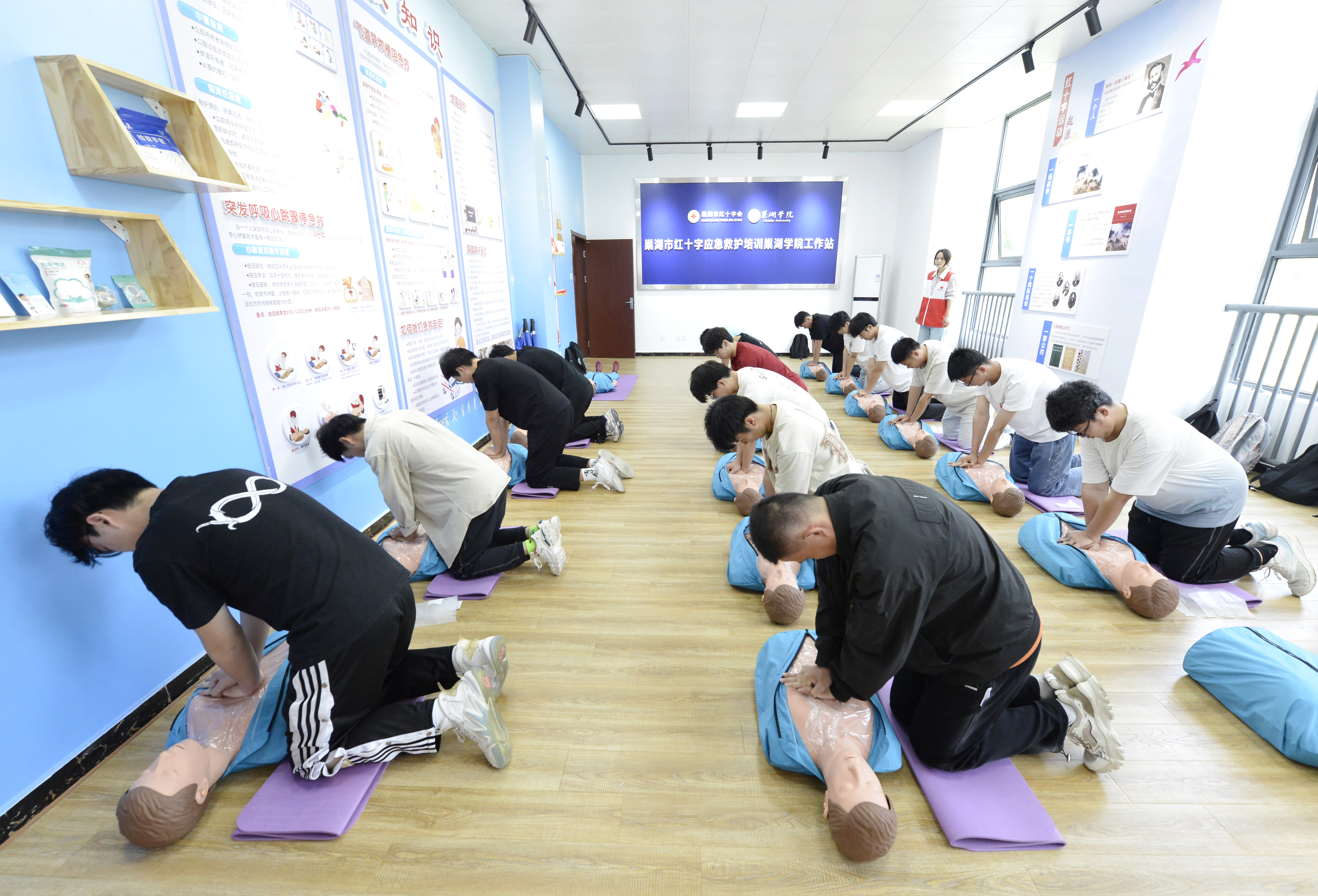 随后,我校应急救护培训老师对30名学生代表开展了首届学员开班培训,主要内容为心肺复苏、海姆立克急救法、外伤包扎。
