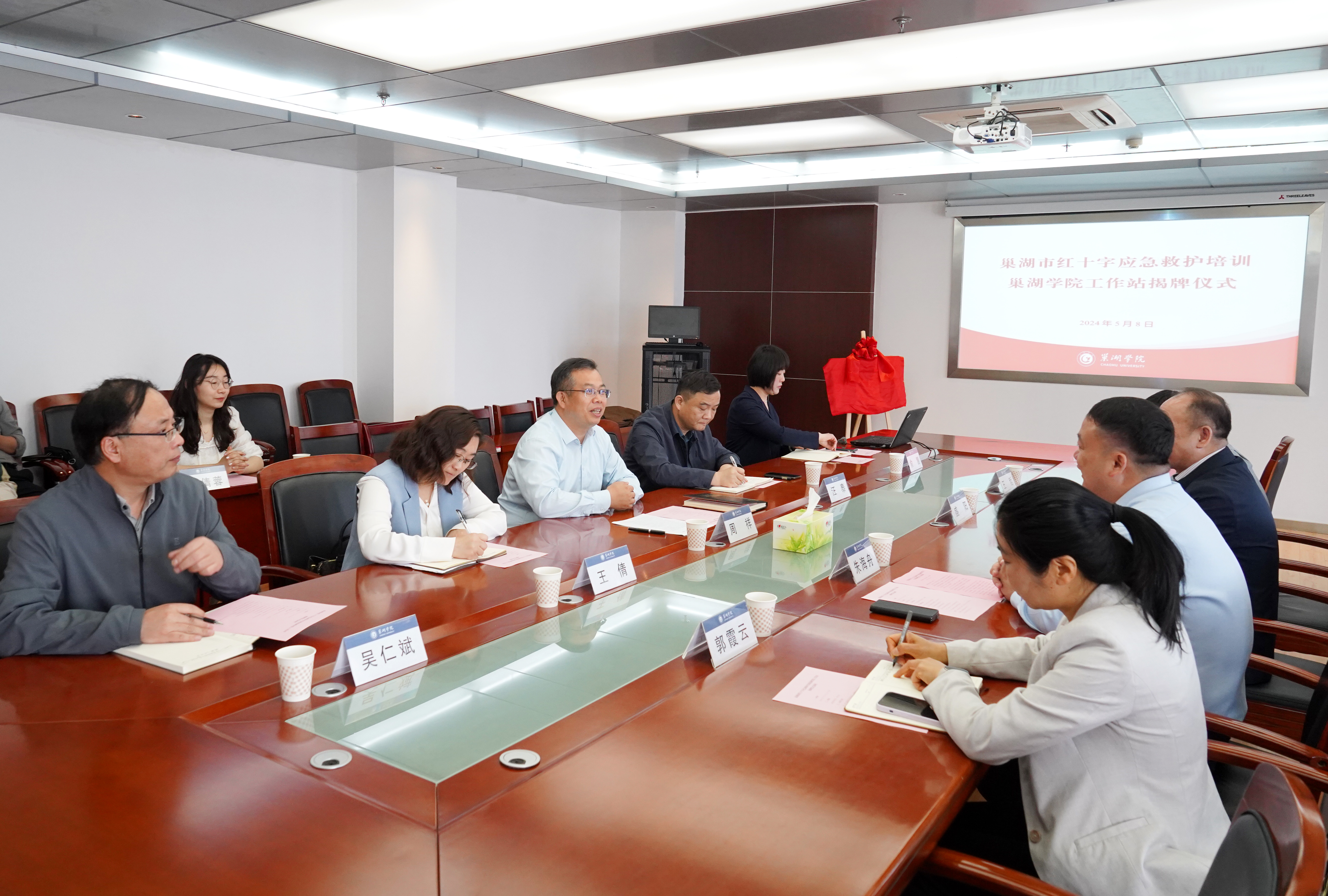 2024年5月8日上午,巢湖市红十字会应急救护培训awc777万象城娱乐官网工作站揭牌仪式在图书馆九楼第五会议室隆重举行。awc777万象城娱乐官网党委委员、副校长周祥,合肥市红十字会副会长盛阳,巢湖市市委常委、常务副市长朱海舟等相关部门人员一同参加揭牌仪式。仪式由周祥主持。
