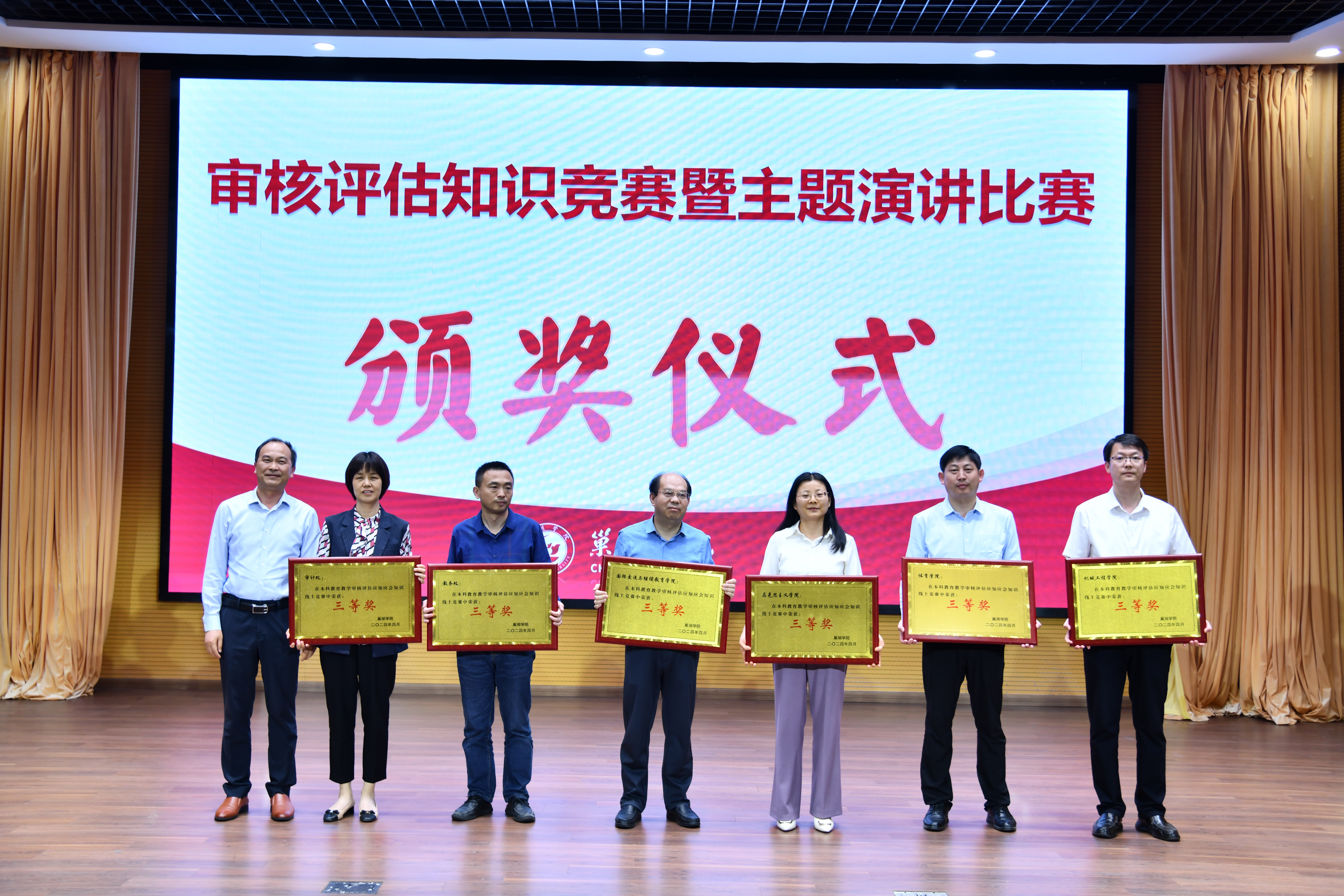 丁俊苗、柯应根、张连福还为审核评估应知应会知识线上竞赛获得团体一等奖的党委巡察工作办公室、文学与传媒学院,获得团体二等奖的信息化建设与管理处、基建工作办公室、生物与环境工程学院、旅游管理学院,获得团体三等奖的审计处、教务处、国际交流与继续教育学院、马克思主义学院、机械工程学院、体育学院颁发了奖牌。