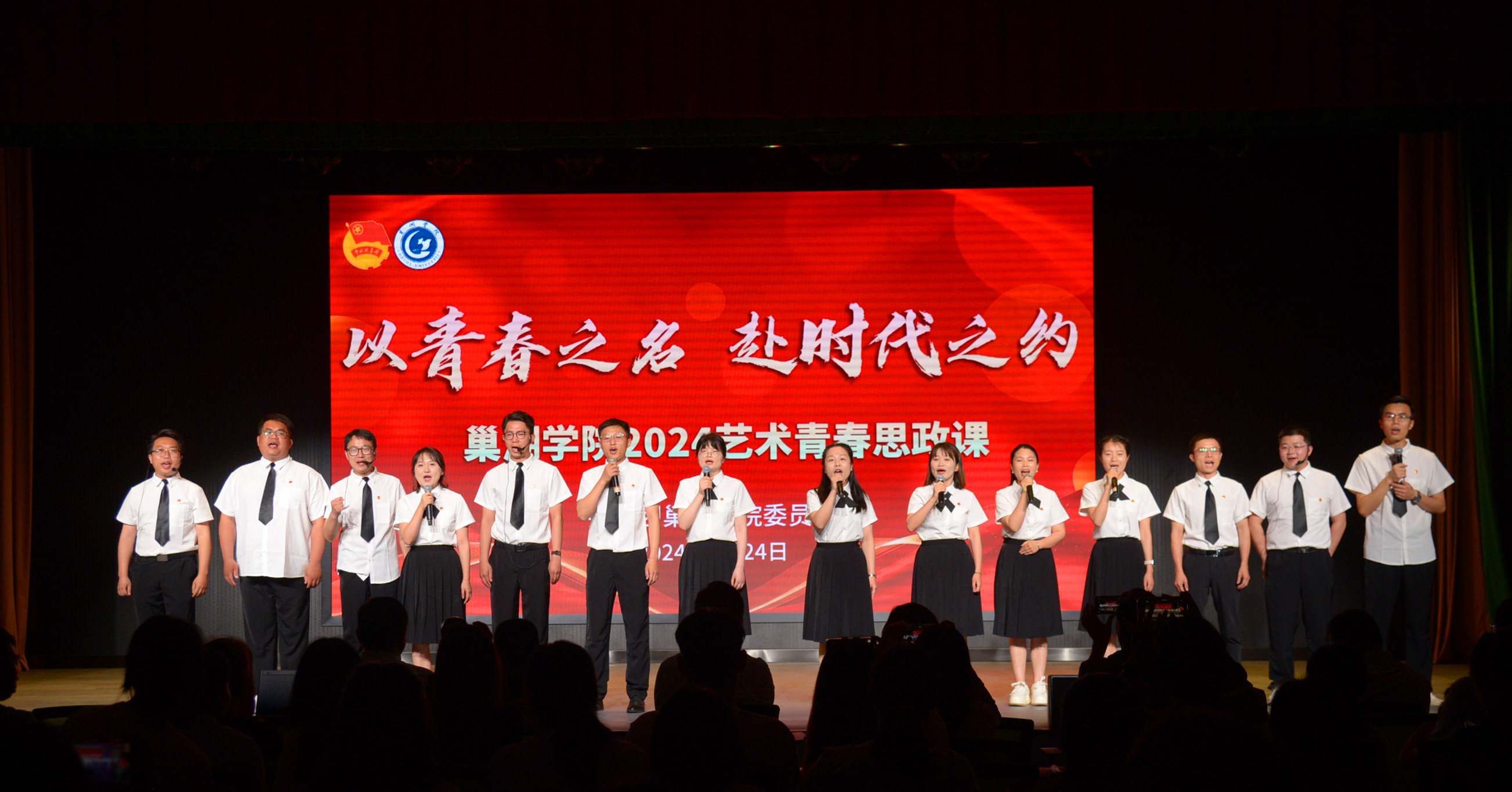 本次艺术青春思政课共分为“青春·立志”“青春·奋斗”“青春·建功”“青春·未来”四个篇章。活动在鼓乐《中国龙》中拉开帷幕。第一篇章的歌舞《上春山》、朗诵《青春的诗篇》和街舞《沸腾的青春》让大家仿佛置身于繁花似锦的春天,感受到青春的勃勃生机,感受到青春是一段充满激情与梦想的旅程,青春不怕失败,青春孕育无限可能;第二篇章的《成长在基层 立志攀高峰 awc777万象城娱乐官网西部计划优秀志愿者感悟分享》视频,展示了巢院历届西部计划志愿者怀着对基层的朴素情怀,对国家的责任担当,主动肩负重担,甘愿“自找苦吃”,到祖国最需要的地方去,用实际行动践行青春使命,奉献青春力量。巢湖民歌《秧歌越唱心越甜》为大家呈现了巢湖独有的地方传统音乐。朗诵《这样的攀登者》激励大家以这些勇敢的攀登者为榜样,勇往直前,不断挑战自我,去创造属于自己的辉煌;第三篇章的歌曲《追梦人》鼓励青年做青春盛宴的主角,勇敢地去追逐自己的梦想。朗诵表演《吾辈英雄》启发大家传承和发扬英雄们的崇高志向,为国家的繁荣富强和民族的伟大复兴贡献自己的力量。群舞《晨光曲》用对比手法展现了中华人民共和国成立前夕,中国人民迎着朝阳,沐浴晨曦,追求希望的美好愿景;第四篇章的《祝福你,我的祖国》以动人的歌声诠释了何其有幸,生于华夏,愿山河无恙,祖国繁荣昌盛。大合唱《巢湖美》用歌声描绘湖光山色的美丽画卷,让大家陶醉在如诗如画的意境里,感受巢湖之美。最后由校、院教师团干共同带来表演《我的未来不是梦》,还原了团干部日常教育引导青年、关心爱护青年的一幕幕场景,表达了愿将小我融入大我,牢记“为党育人 为国育才”使命,保持事业定力,陪伴引领青年学子与党同心、跟党奋斗,不负青春、不负时代的职业誓言。