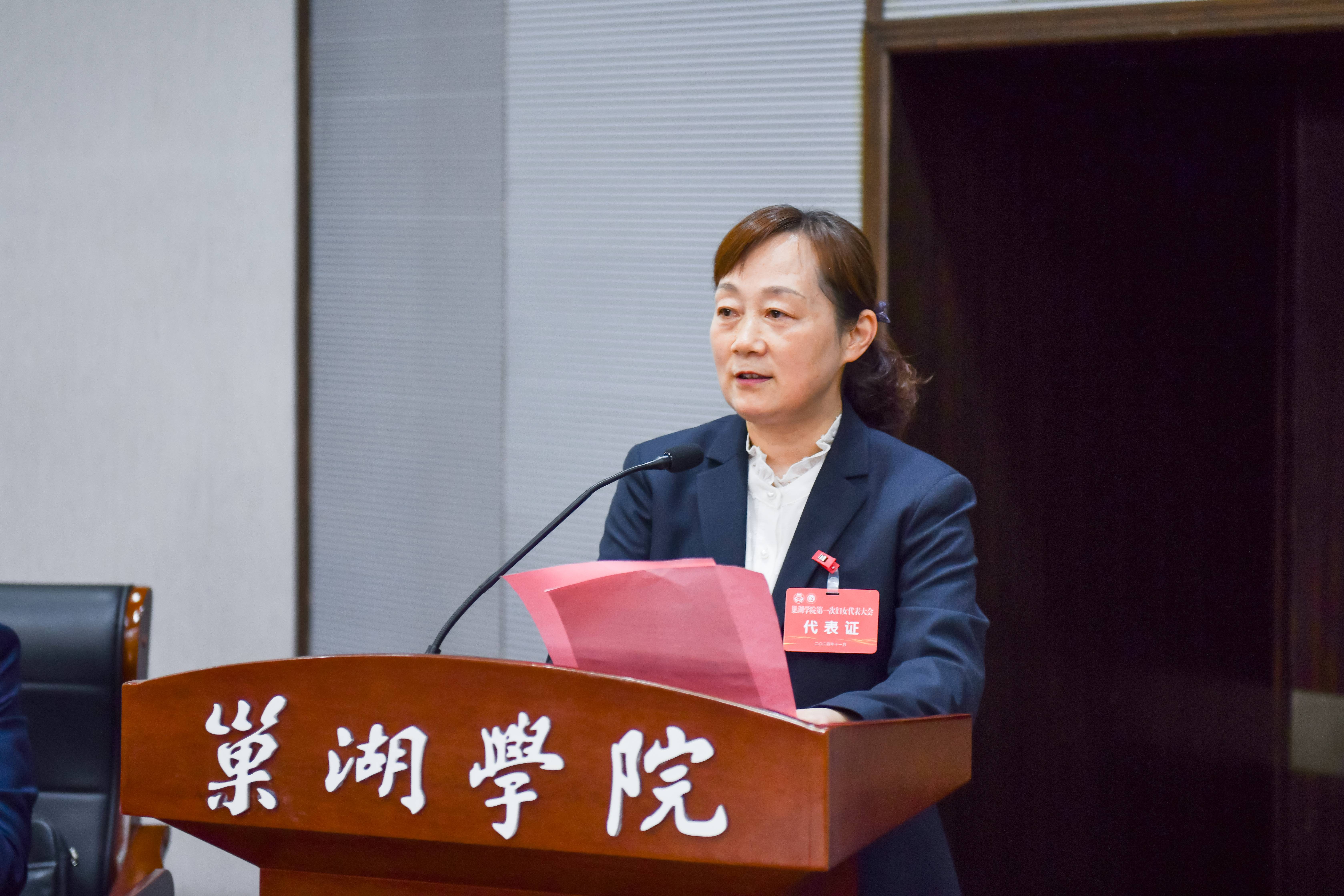 凝聚巾帼力,建功新征程。11月13日下午,awc777万象城娱乐官网在致知楼报告厅召开妇女联合会成立暨第一次妇女代表大会。安徽省妇联一级巡视员、机关党委书记张若平,校党委书记周峰出席大会并致辞。校党委副书记、校长张莉,省妇联组联部挂职干部牛勤,巢湖市妇联主席、党组书记伍倩,校党委委员、副校长周祥、丁俊苗出席大会。大会筹备工作组成员及全校妇女代表参加大会。大会由张莉主持。