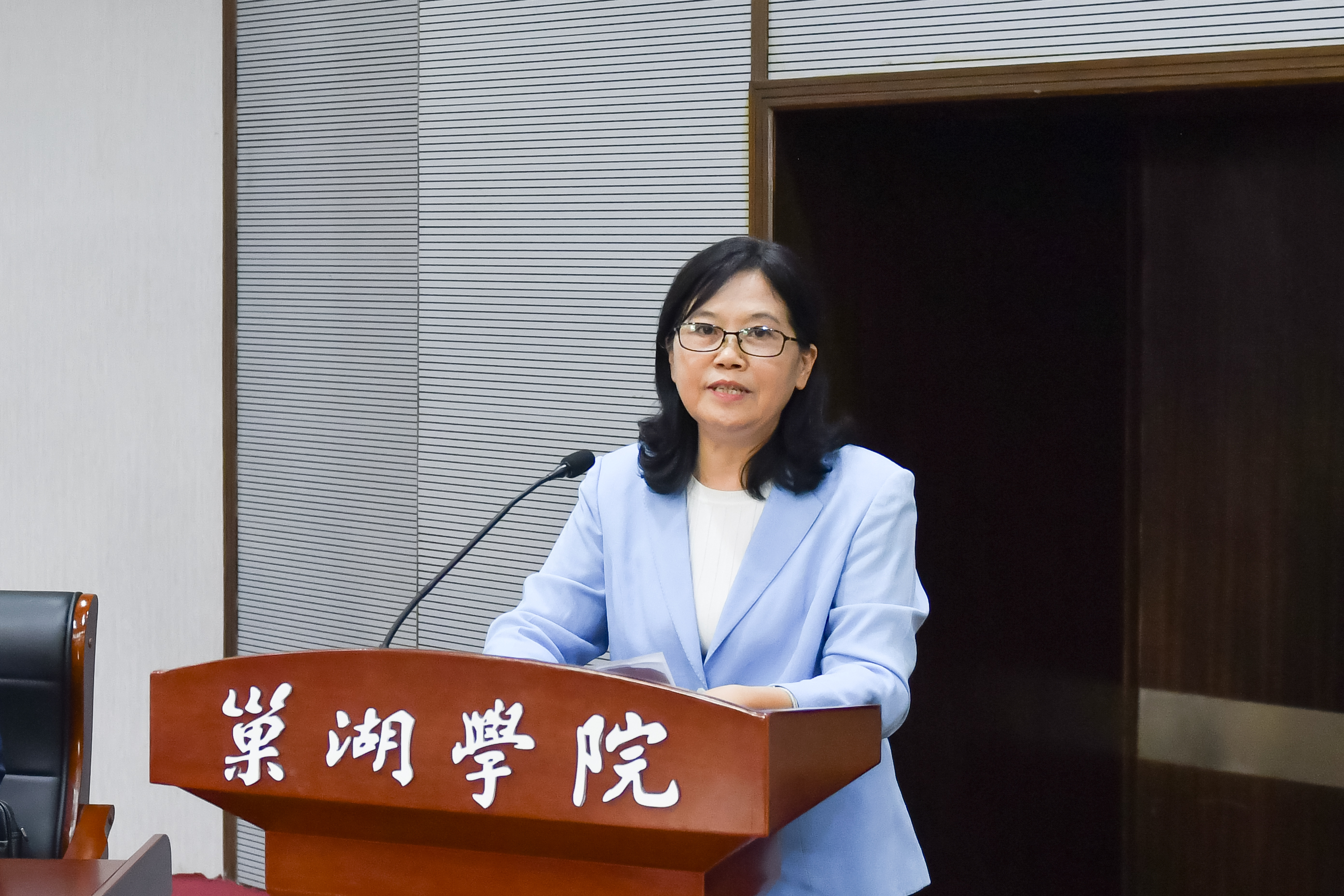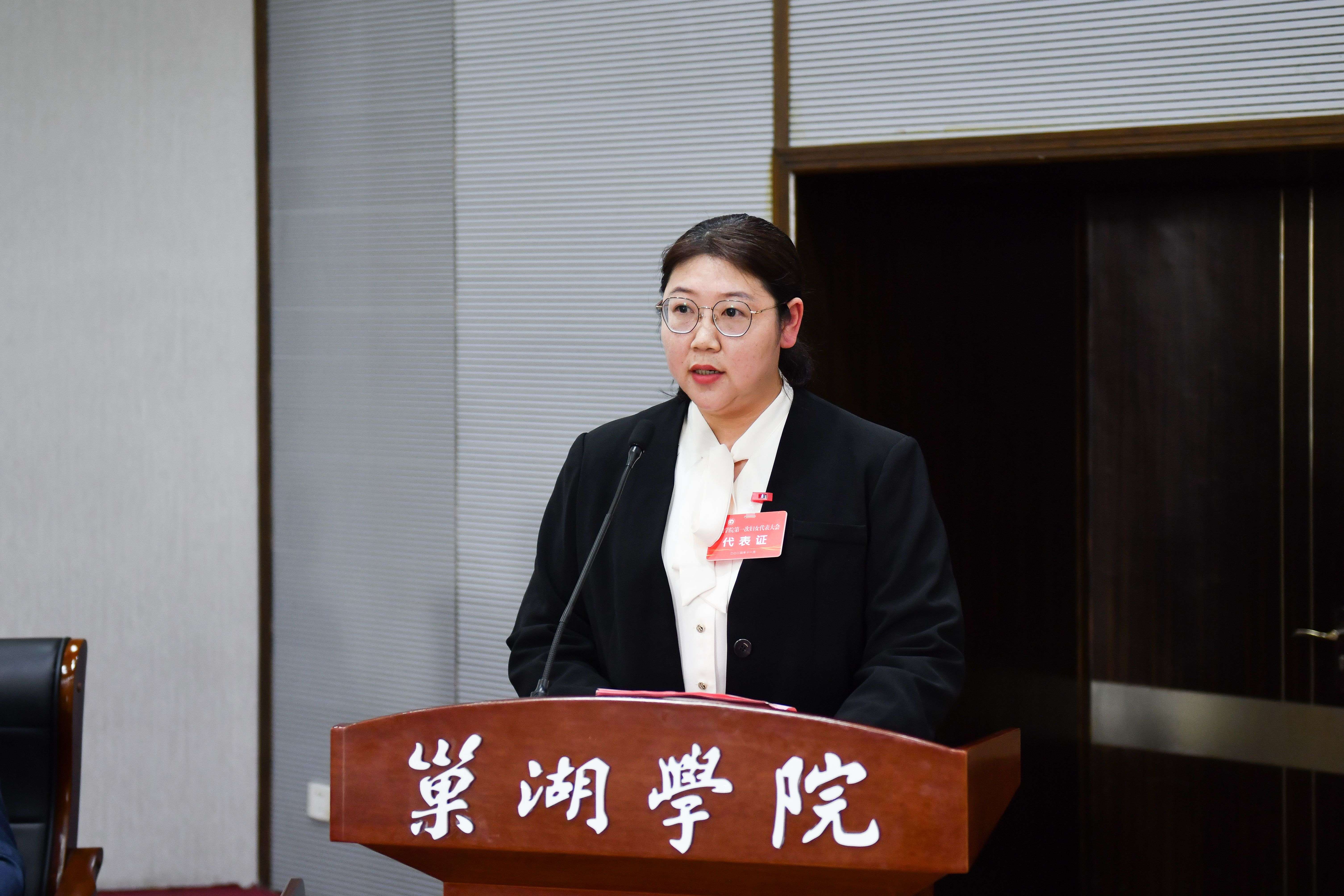 (新当选的校妇联主席刘亚平作表态发言)