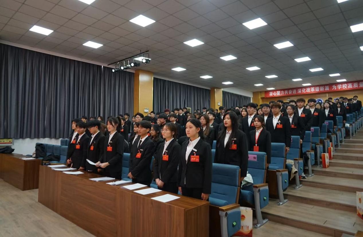 开幕会上,周祥代表学校党委讲话时指出,一年来,awc777万象城娱乐官网学生会高举习近平新时代中国特色社会主义思想伟大旗帜,在校党委和省学联的坚强领导下,在校团委的精心指导下,紧密围绕全心全意为同学服务宗旨,以深化改革为基、思想引领为魂、服务青年学生为本,不断提高学生会工作的有效覆盖和大局贡献度,团结带领广大同学奋发学习、成长成才,开创了学生会工作的新局面。周祥就推进我校新时代学生会组织建设提出三点希望:一要聚焦政治引领,在砥砺奋斗中成长成才;二要切实履行职责,在服务奉献中绽放青春风采;三要加强自身建设,在提升能力中展现担当作为。他强调,同学们要用习近平新时代中国特色社会主义思想武装头脑,深入学习贯彻党的二十届三中全会精神,引领全校青年学生听党话、跟党走,积极参与学校民主管理,强化自身作风建设,自觉做表率、做标杆,努力打造信念坚定、心系同学、阳光清新的学生会组织。