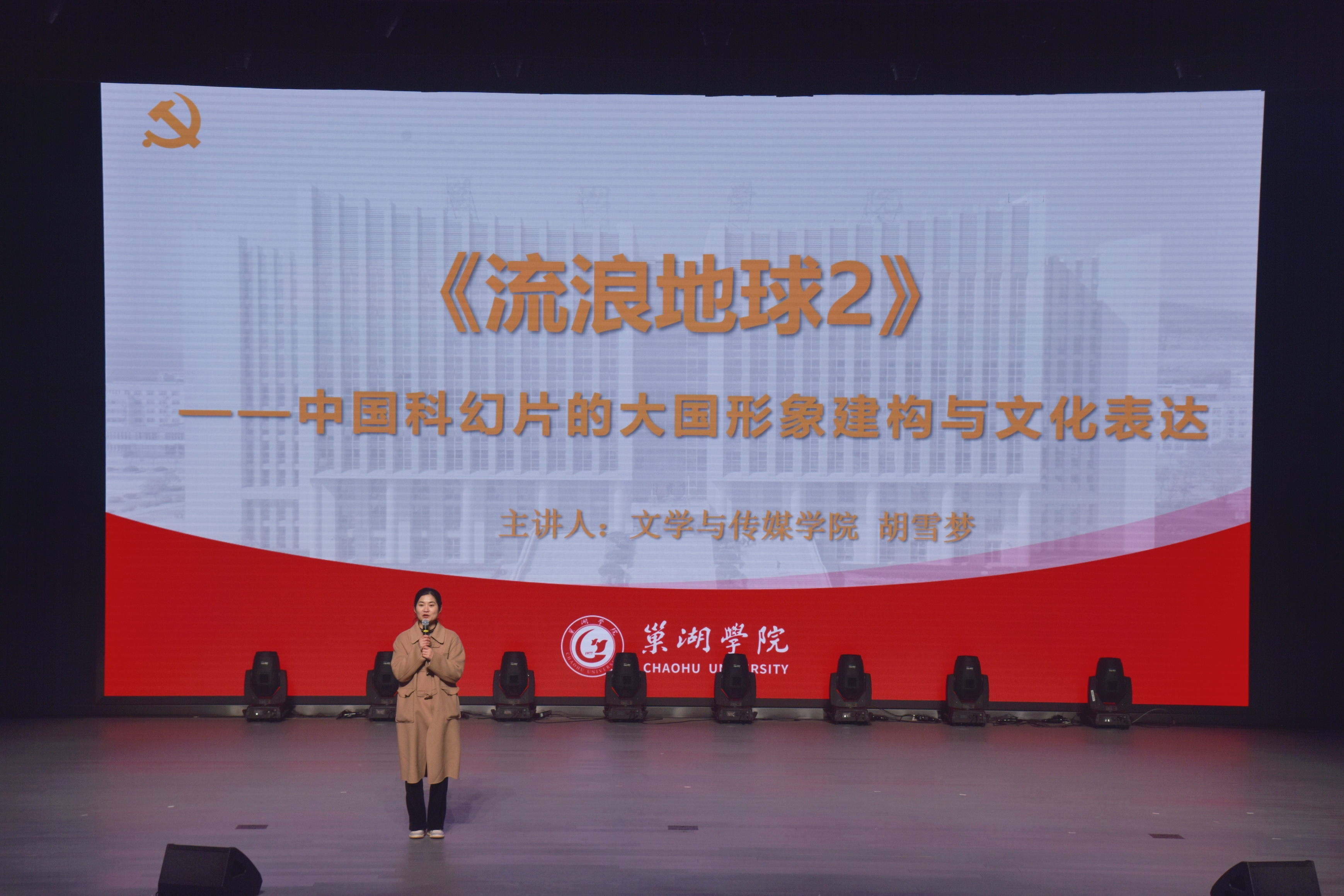 活动伊始,文学与传媒学院教师胡雪梦围绕《流浪地球2》影片主题、类型和制作等方面,作了题为《中国科幻片的大国形象建构与文化表达》的导视解读。