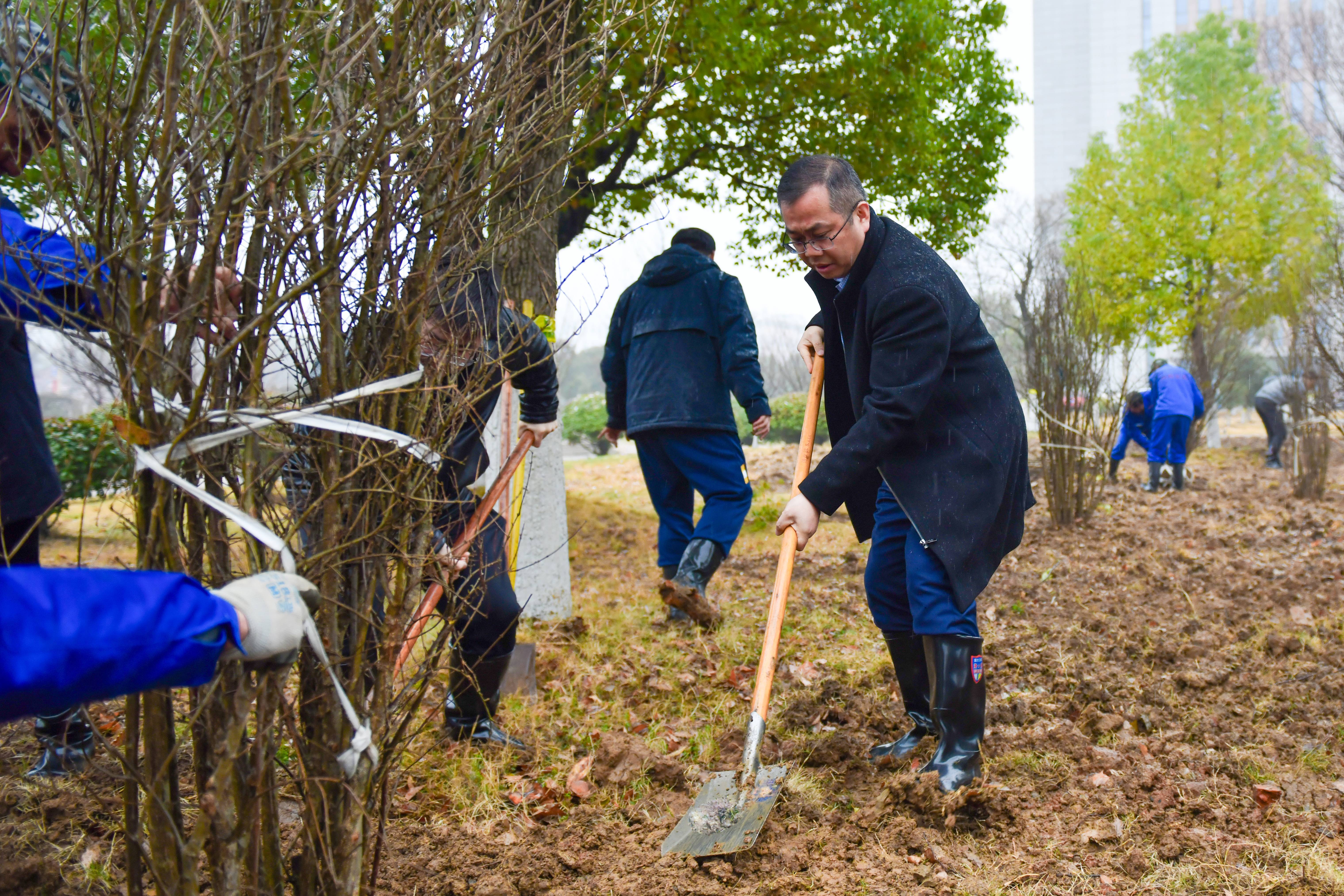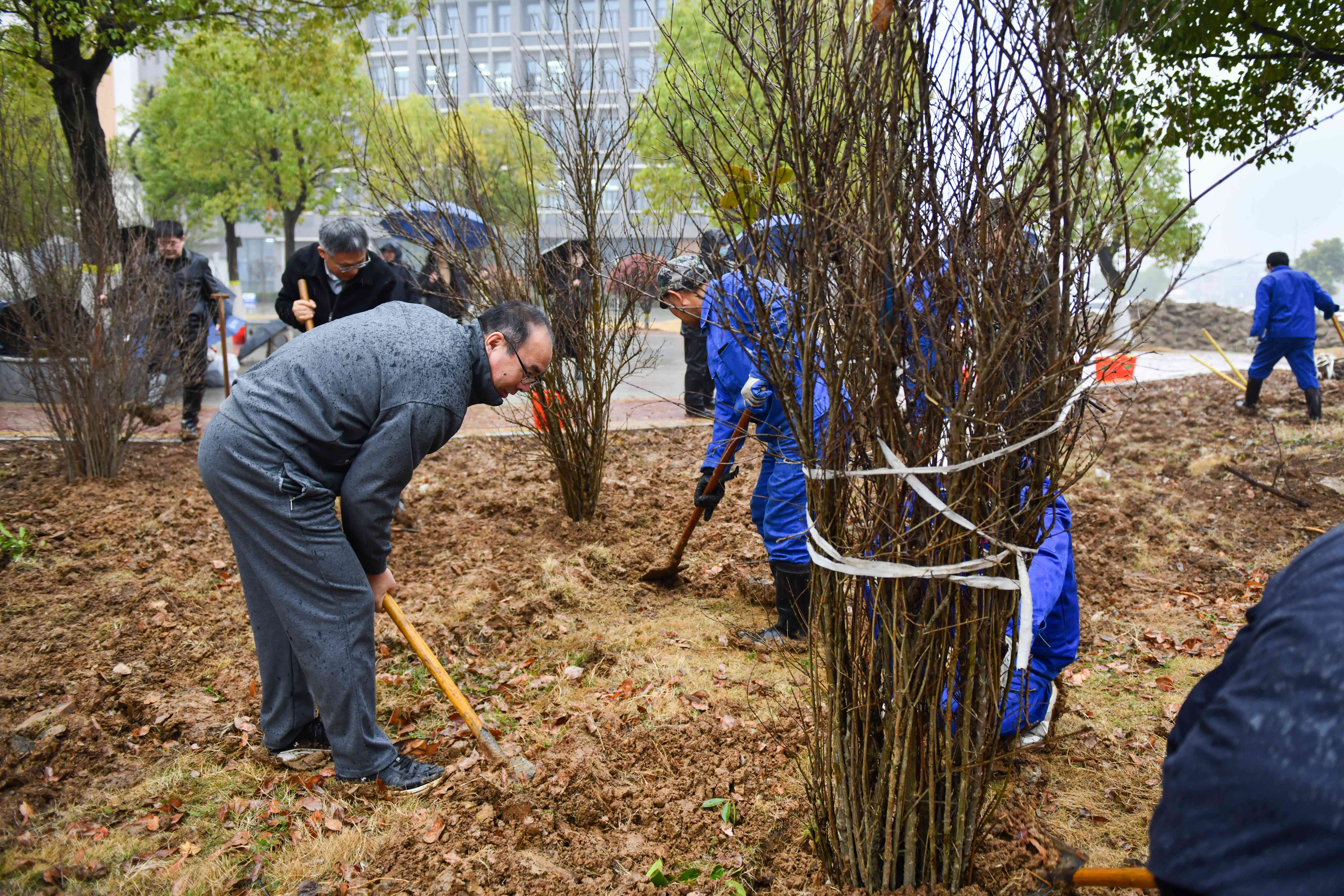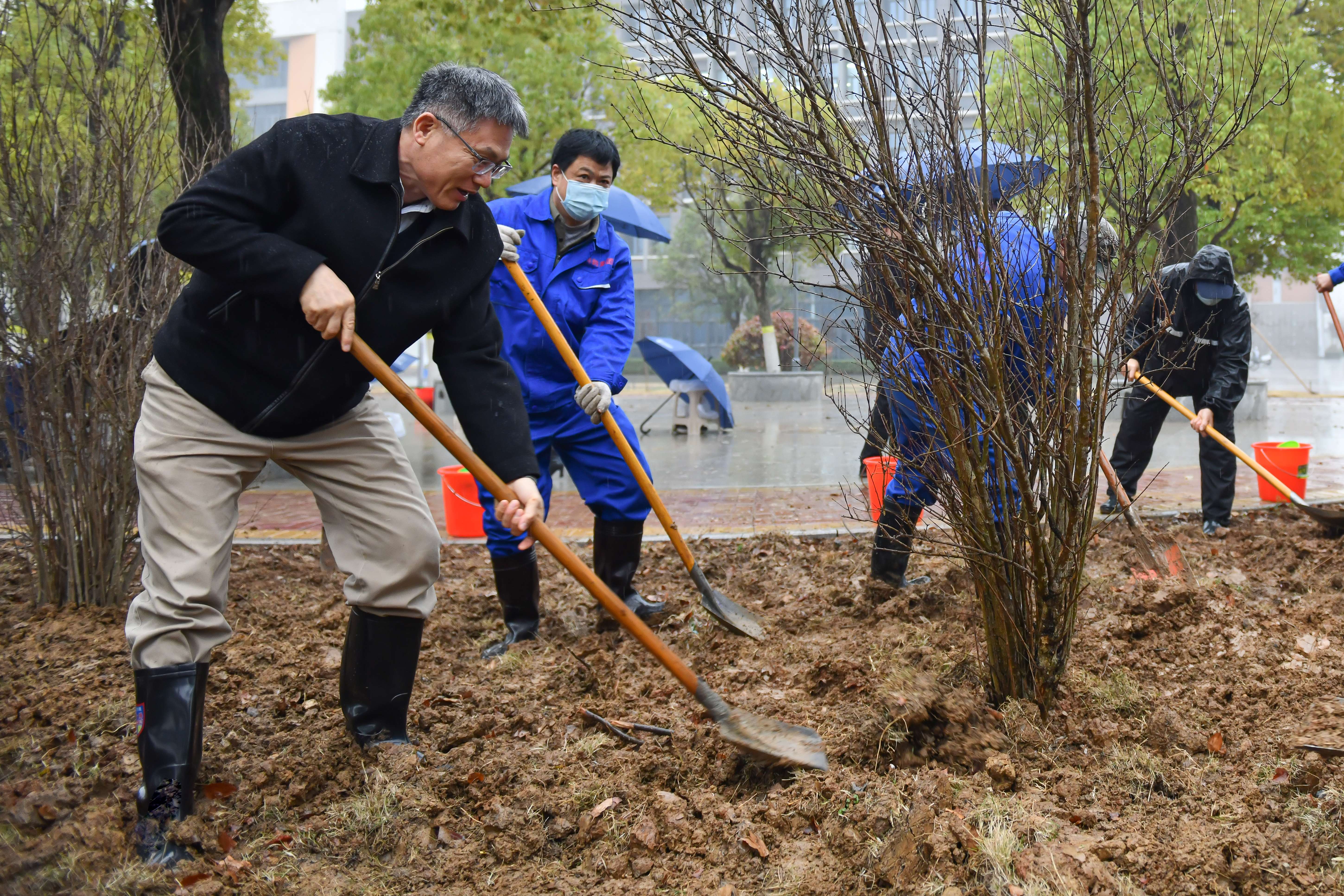 活动现场,大家手持铁锹,扶正树苗、覆土夯基,栽种下石榴、紫荆、桂花等树苗,共绘校园生态新画卷。植树间隙,周峰不时与干部职工交流,详细询问了树种选择、苗木生长习性及后期养护管理等情况,叮嘱后勤部门要落实责任,精心管护,不断增厚“绿色家底”。