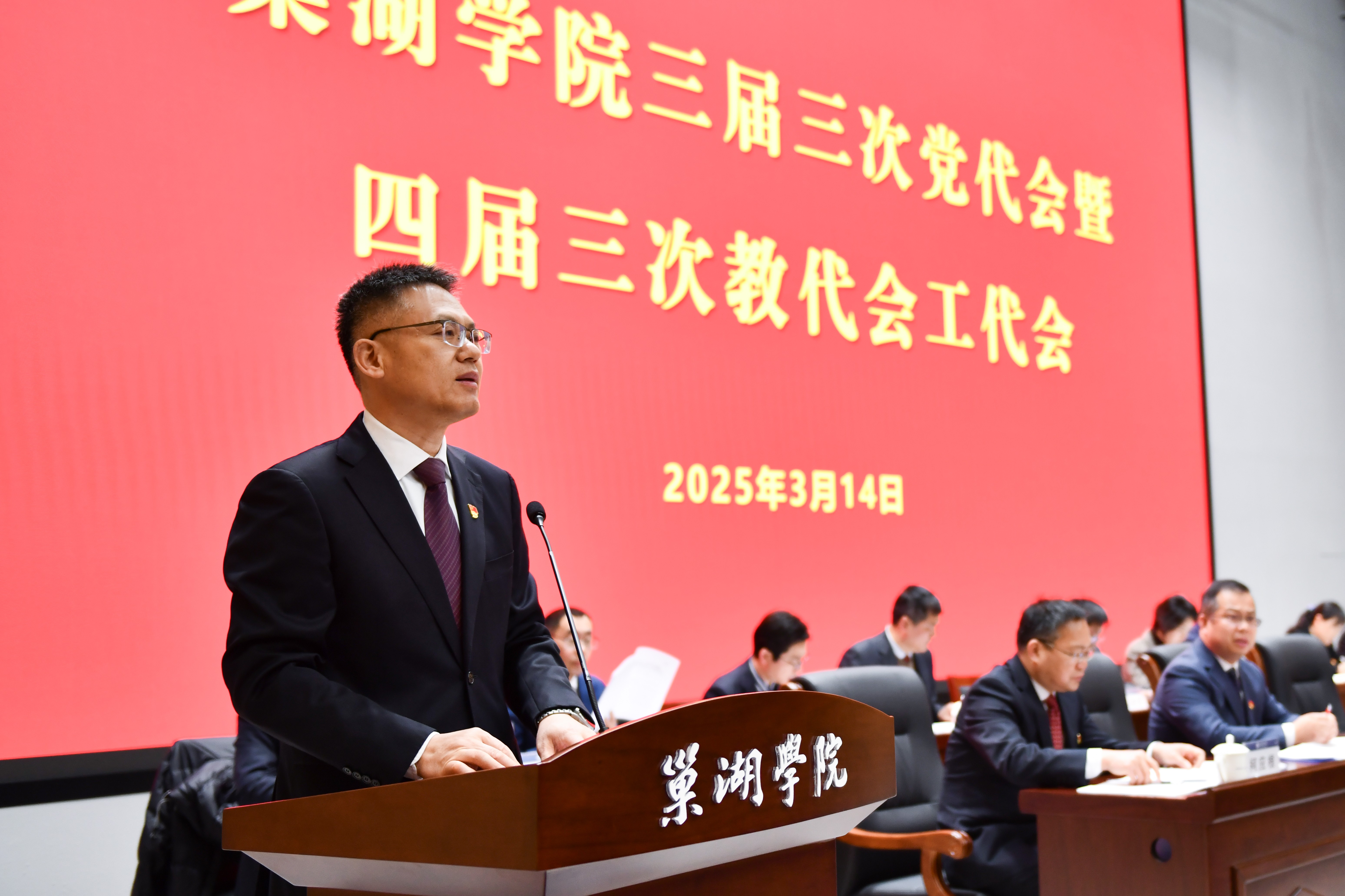 报告指出,2024年是中华人民共和国成立75周年,是实现“十四五”规划目标任务的关键之年,也是学校全力推进硕士学位授予立项重点单位建设和地方应用型高水平大学建设的攻坚之年。一年来,在省委和省委教育工委的坚强领导下,在地方政府的大力支持下,学校坚持以高质量党建引领高质量发展,深入学习贯彻党的二十届三中全会和习近平总书记考察安徽重要讲话精神,深化党纪学习教育,聚焦“两个建成”,凝心聚力攻坚克难,学校风清气正的政治生态持续巩固,干部职工干事创业的精气神持续提振,人才培养质量显著提高,科技创新与服务地方能力显著增强,综合办学实力与核心竞争力显著提升,各项事业发展呈现出良好态势,为建设特色鲜明的地方应用型高水平大学奠定了坚实基础。