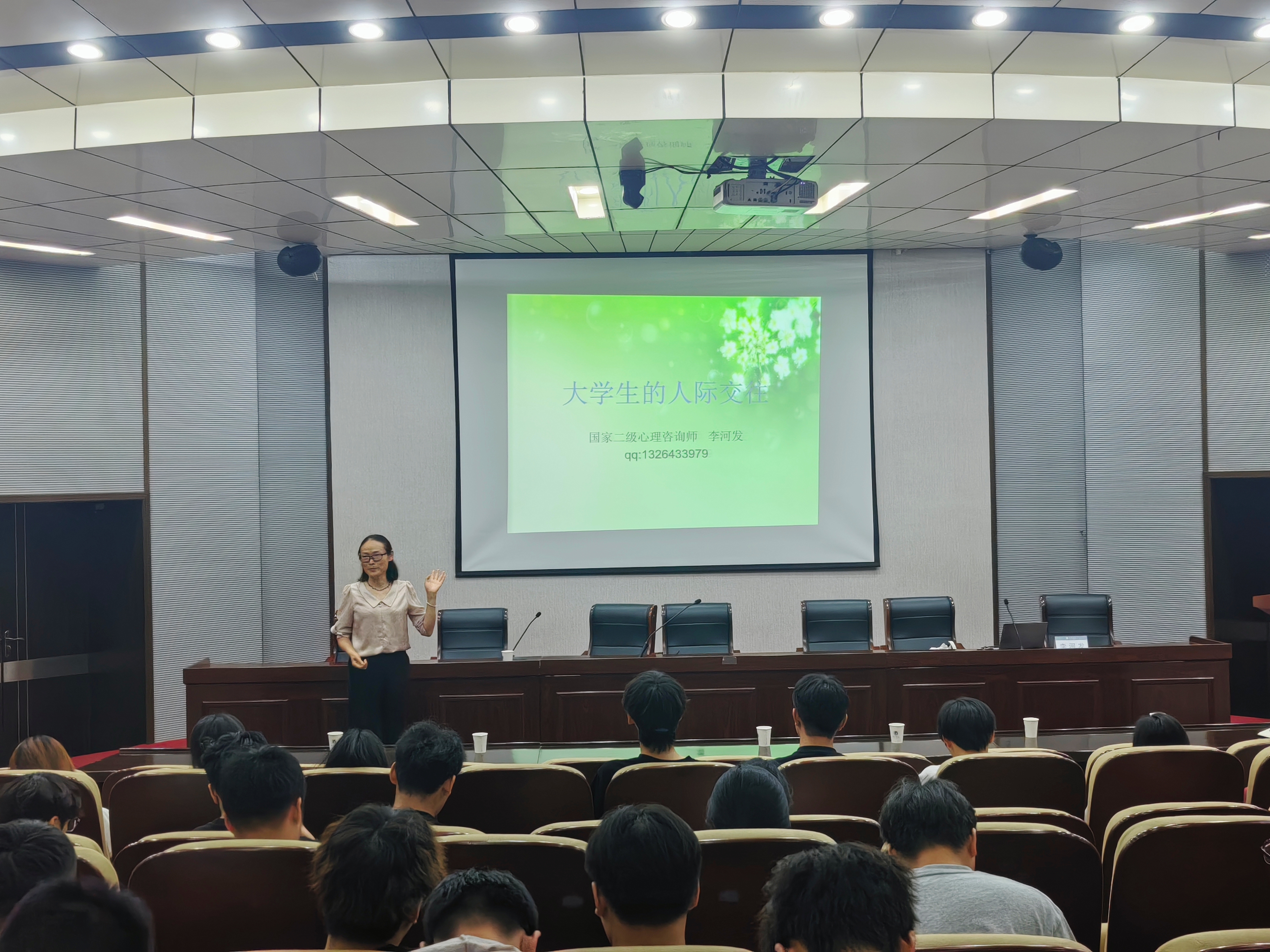 启动仪式结束后,心理健康教育中心心理咨询师李河发带来 “大学校园的人际关系”主题讲座。李河发结合多年咨询经验,从宿舍关系、同学协作、师生沟通等大学生常见社交场景切入,通过案例分析、互动问答等形式,深入解析人际关系中的沟通技巧与心理调适方法。她认为,真诚尊重、换位思考和边界意识是构建和谐人际关系的关键,引导同学们以积极心态面对社交挑战,在互动中学会理解与包容,提升人际交往能力。