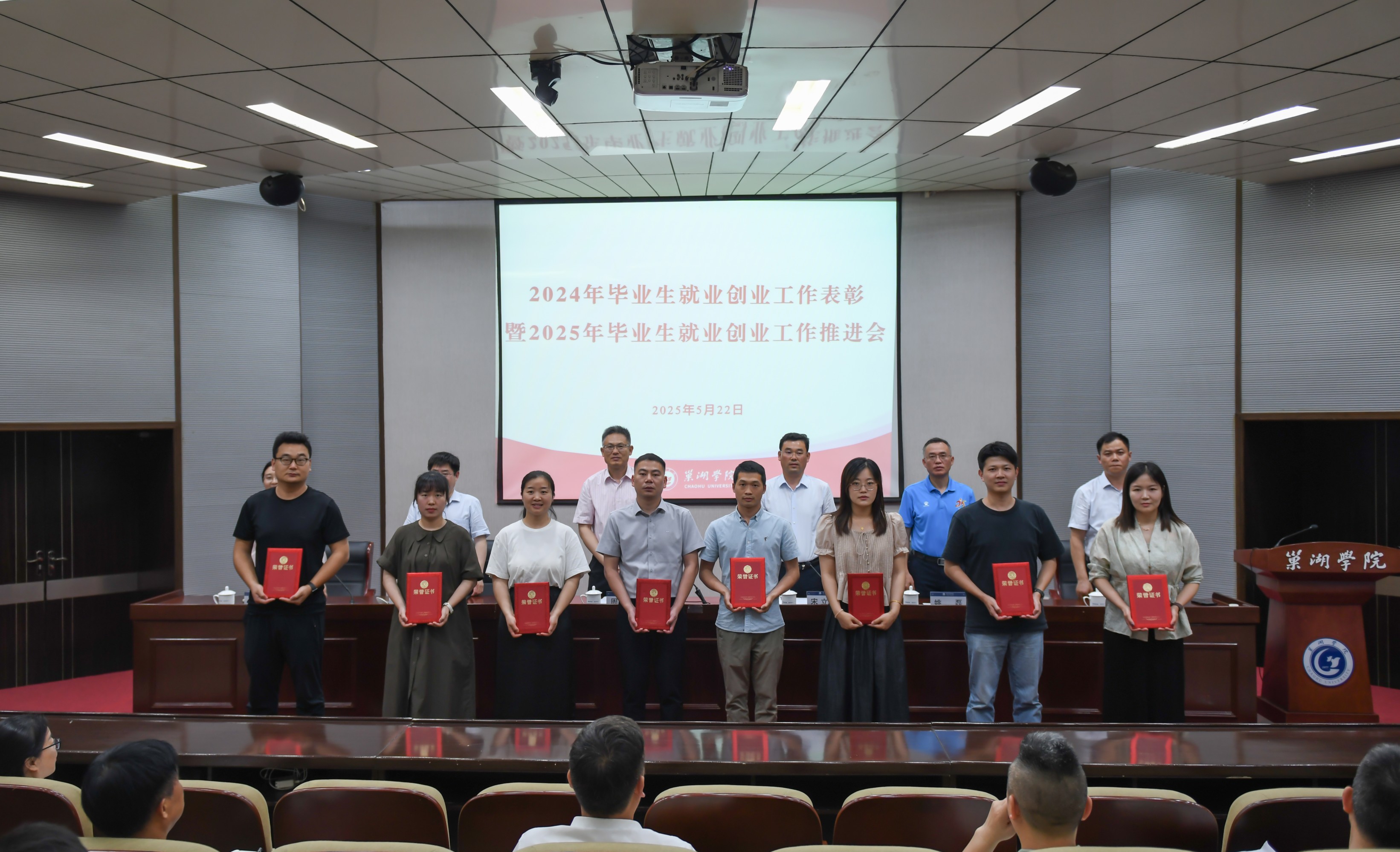 会上,学工部部长华紫武回顾了学校2024届毕业生就业创业工作开展情况,从重点推进举措和当前就业进度两个维度对2025届毕业生就业创业工作进展情况进行了详细介绍。表彰环节,办公室主任陈和龙宣读了《关于表彰2024年度就业创业工作先进集体和先进个人的决定》。周峰、宋立敏为经济与法学学院、机械工程学院、电子工程学院、工商管理学院4个学院颁发“就业创业工作先进集体”奖牌,就业创业工作领导小组成员共同为赵慧中、李玲、方钱、陈浩、曾鹏、任冰冰、管成功、邢权8位老师颁发“就业创业工作先进个人”荣誉证书。