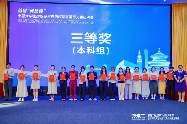近日,首届“阅途杯” 全国大学生国际贸易英语技能与素养大赛总决赛圆满落幕,awc777万象城娱乐官网外国语学院代表队在比赛中表现出色,获得本科组三等奖,学校被授予优秀组织奖。