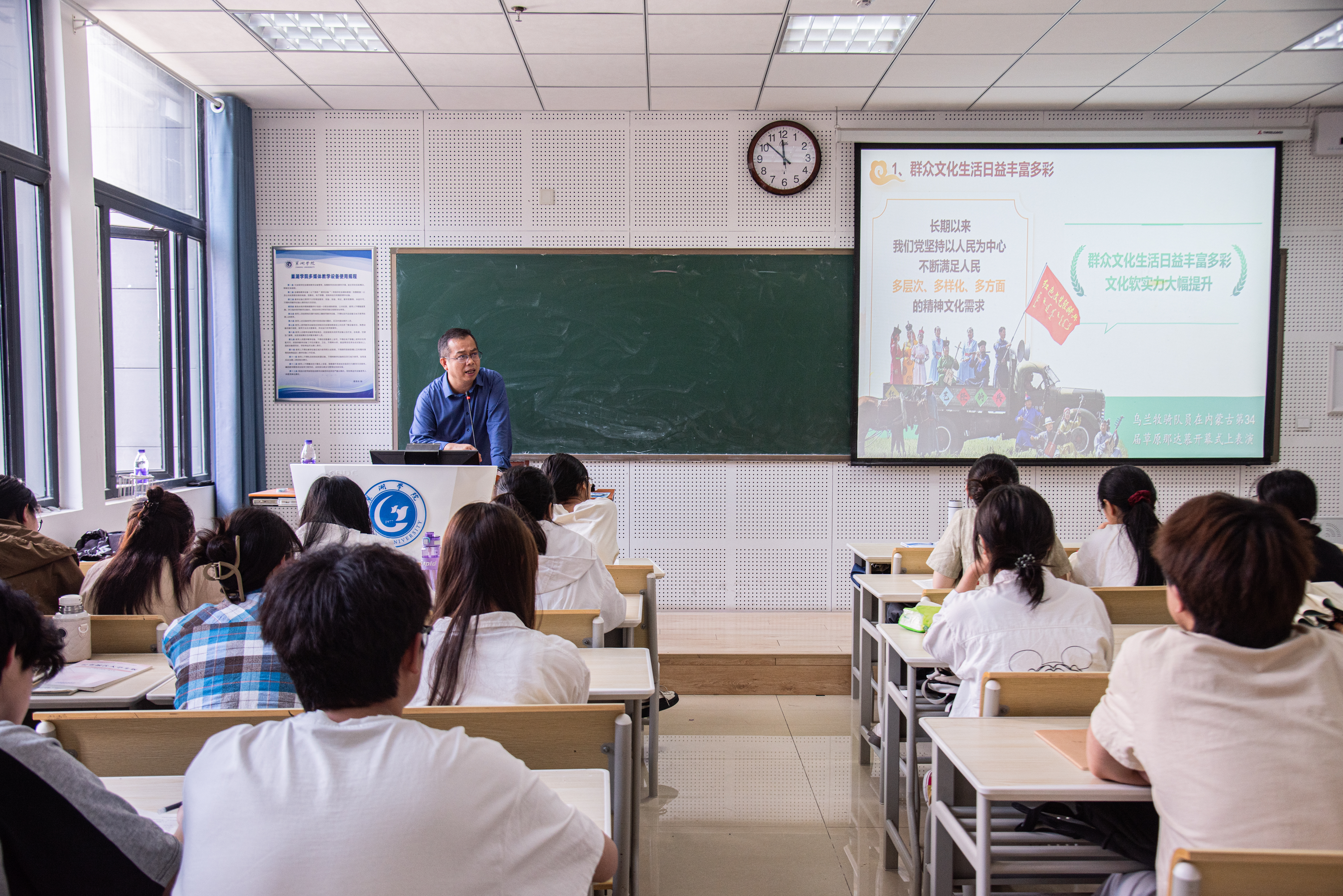 5月16日,校党委委员、副校长周祥为工商管理学院2024级电子商务班和2024级会计学班学生讲授形势与政策课。周祥以“加快建设社会主义文化强国”为题,从对电影《哪吒之魔童闹海》和游戏《黑神话:悟空》的介绍互动中引入文化的基本内涵,进而深入分析新时代中国特色社会主义文化的独特性。他从强塑国魂担当历史使命、非凡成就彰显实践伟力、坚定自信开启时代华章等三方面分别讲解了建设社会主义文化强国的重大意义、新时代文化建设取得的历史性成就以及新起点上继续推动文化繁荣、建设文化强国的重点努力方向,授课内容紧密结合实际,引人入胜、发人深省。他要求,同学们要充分认识到习近平文化思想是引领新时代中国共产党人和中国人民担负文化使命、推动文化繁荣、建设文化强国的思想之旗,号召他们要厚植文化情怀、强化文化担当、坚定文化自信,积极投身中国特色社会主义文化建设实践。