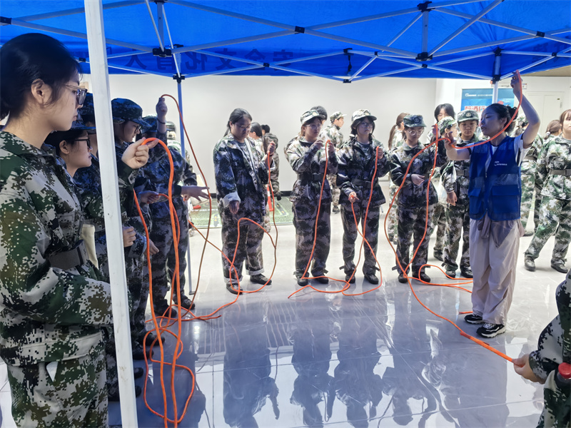 演练活动内容丰富多彩,涵盖烟雾逃生、灭火实训、结绳训练、醉酒行走体验、沉浸式VR交通安全与防溺水教学、海姆立克急救法、禁毒教育以及反诈互动体验等八大实训项目。通过模拟真实场景和互动体验,同学们在实操中掌握逃生、自救、互救等关键技能,有效提升了应对突发事件的能力。