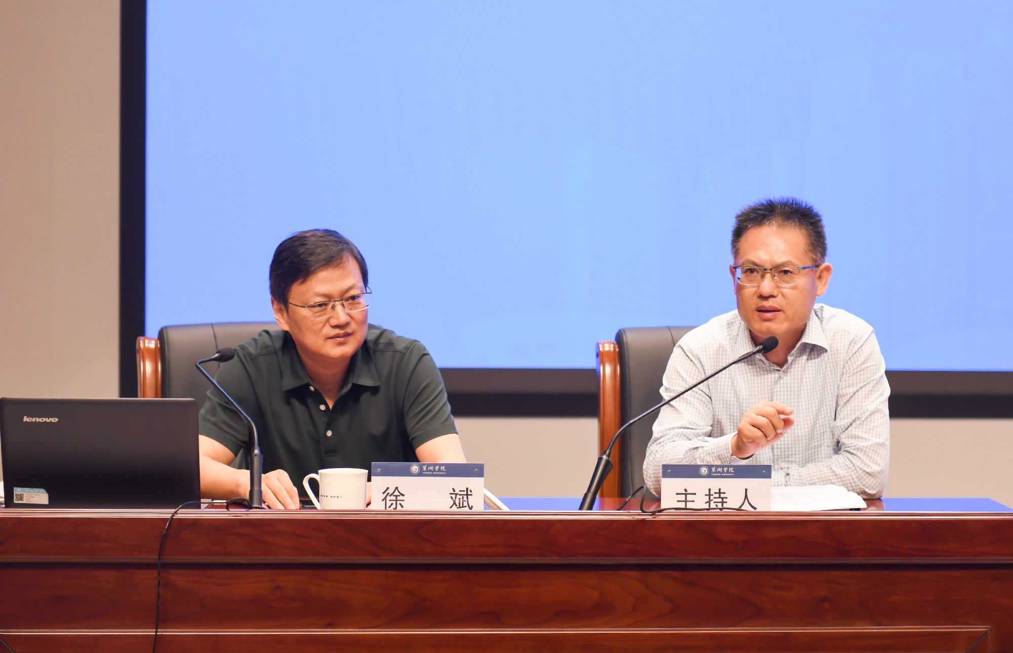 校党委书记周峰主持报告会。在校校领导、正处级领导干部、二级学院分管科研副院长、教授、博士、基层教学组织负责同志近500人参加报告会。