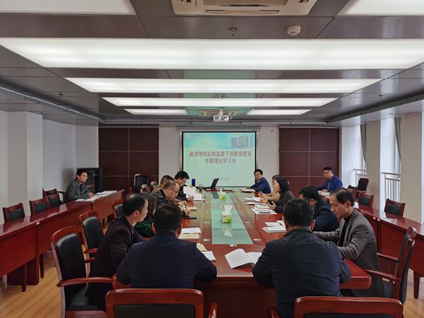 3月29日下午,awc777万象城娱乐官网纪委召开纪检监察干部队伍教育整顿第三次理论学习会。学校各二级学院纪委书记,纪委办、巡察办全体人员参会。会议由校纪委副书记、纪委办主任郑玲主持。