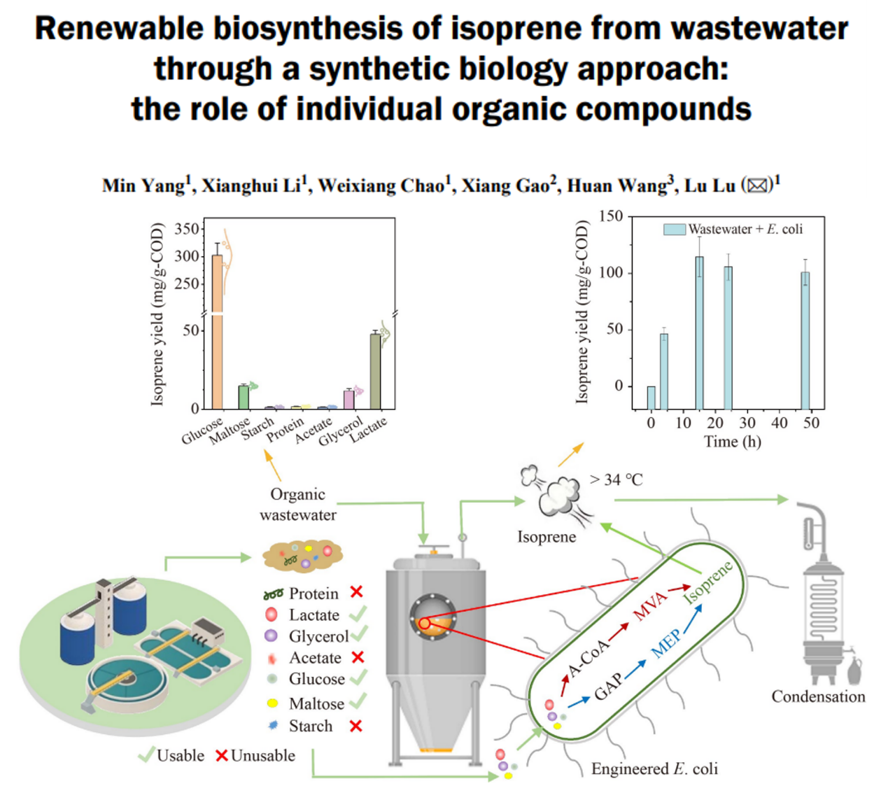 近日,中心研究人员杨敏博士在废水有机物资源化与碳高值转化研究中取得新进展,相关成果以“Renewable biosynthesis of isoprene from wastewater through a synthetic biology approach: the role of individual organic compounds”为题发表在国际权威期刊《Frontiers of Environmental Science & Engineering》(SCI,中科院大类二区,IF:6.4)。