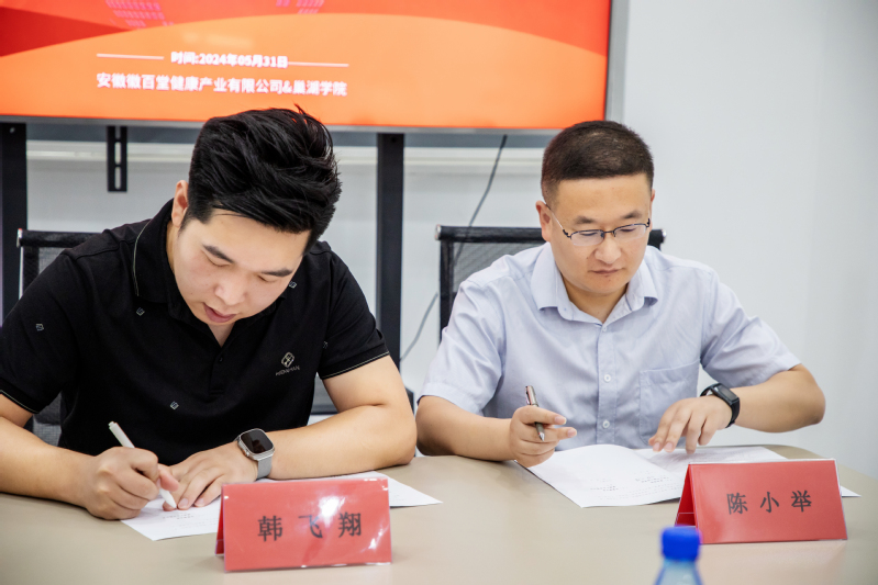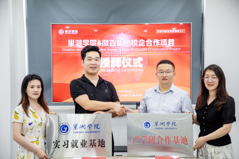 5月31日上午,安徽省环巢湖乡村振兴协同技术服务中心(培育)主任/生环学院副院长(主持工作)陈小举、唐小超博士以及宋云洪博士一行3人赴安徽徽百堂健康产业有限公司开展校企合作及访企拓岗活动。双方在徽百集团会议室举行座谈会,徽百集团负责人韩飞翔出席会议。