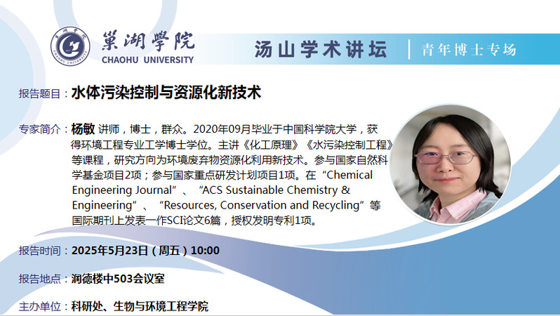 汤山学术讲坛青年博士专场第11讲:(5月23日:生物与环境工程学院杨敏博士讲座)