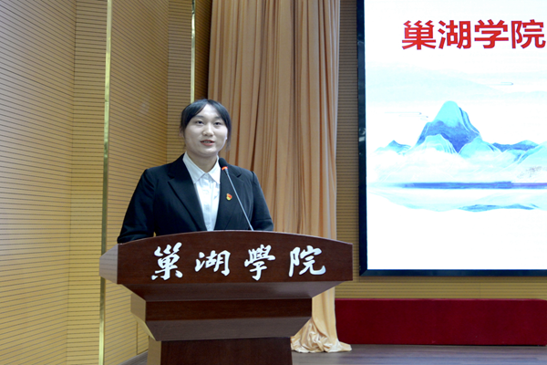经济与法学学院2019级金融工程专业徐霖同学代表全体学生发言。她分享了自己学习和社会实践经历,倡议同学们要从我做起,从点滴做起,为营造优良校风学风贡献自己的力量。