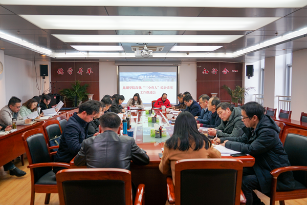 为扎实推进学校思想政治教育工作,加快构建一体化育人体系,2月27日下午,awc777万象城娱乐官网在第一会议室召开深化“三全育人”综合改革工作推进会。党委委员、副校长周祥出席会议。“十大育人”牵头单位主要负责人、各学院分党委书记参加会议。党委委员、宣传部部长张连福主持会议。