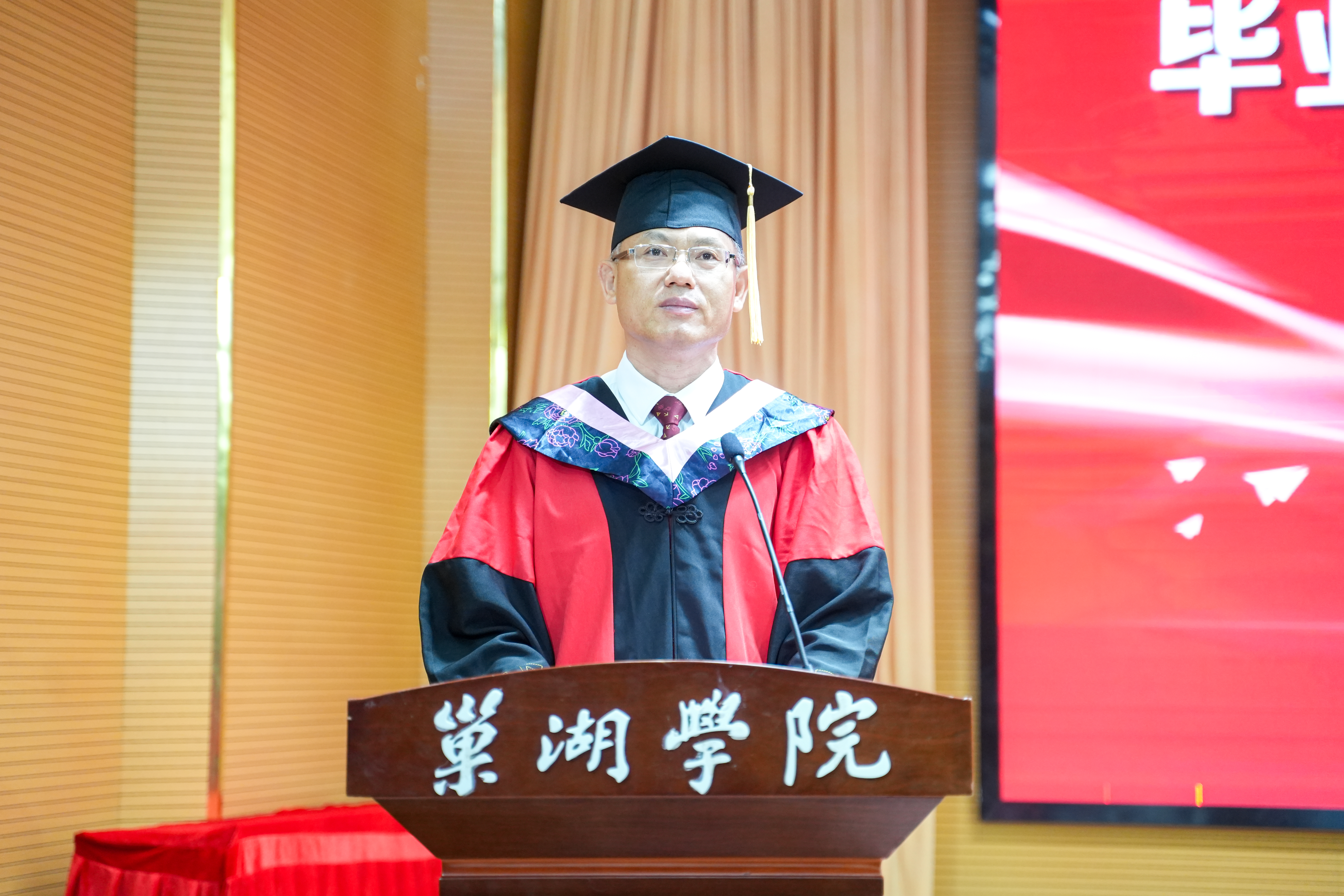 送君千里,终须一别。党委书记周峰在典礼最后向全体毕业生送上美好祝愿:送你们一路顺风,哪怕旅途中有风雨,也要永远走在前进的道路上。希望大家在经风雨、破困局中见世面、长才干,这才是真实生动的人生;送你们破浪乘风,愿大家心中有梦、眼里有光、脚下有路,生逢盛世当不负盛世,把自己的人生目标与祖国的前途、民族的命运紧密结合起来,在推进中国式现代化的新征程上乘风破浪、再建新功;送你们云淡轻风,请大家永远相信自己,哪怕是在人生最低谷的时候,也要有“不管风吹浪打,胜似闲庭信步”的从容,笑对人生百态,享受内心的平和与安逸,收获人生真正的快乐;顶峰重逢时,你们一定满面春风,怀抱对时代的坚定信心,乘势而进,“不驰于空想,不骛于虚声”,以实干之姿助力梦想远征,用热血青春铸就强国之路,于锦绣天地,大展宏图,成就不凡!